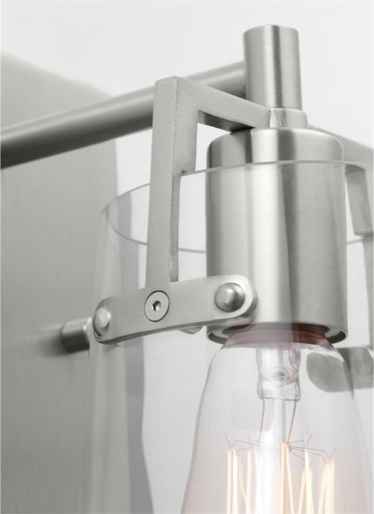 Made to coordinate across a broader range of bath hardware and design styles, this light adds bright light where you need it most with its clear glass shades and sleek metal backplate in striking, modern finishes