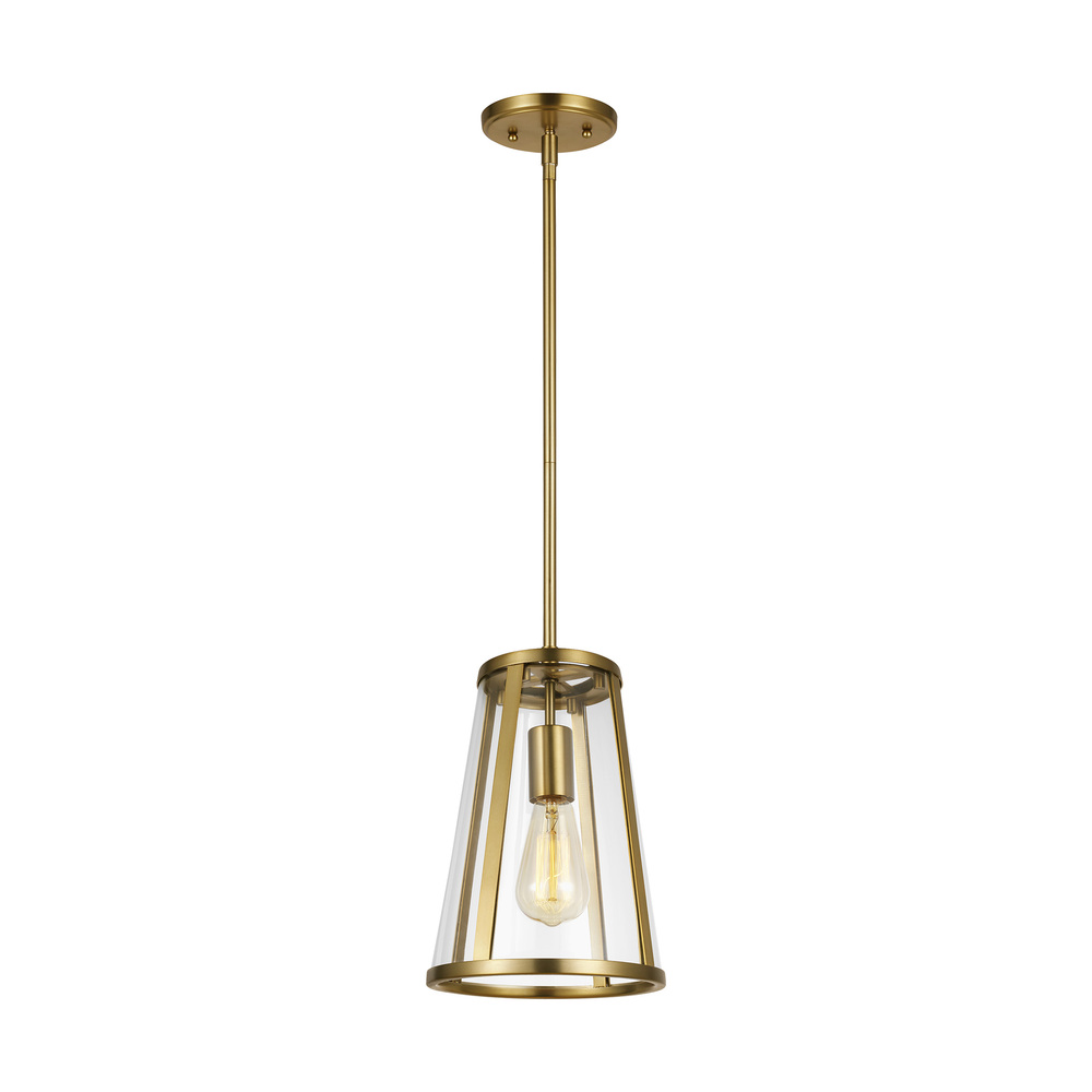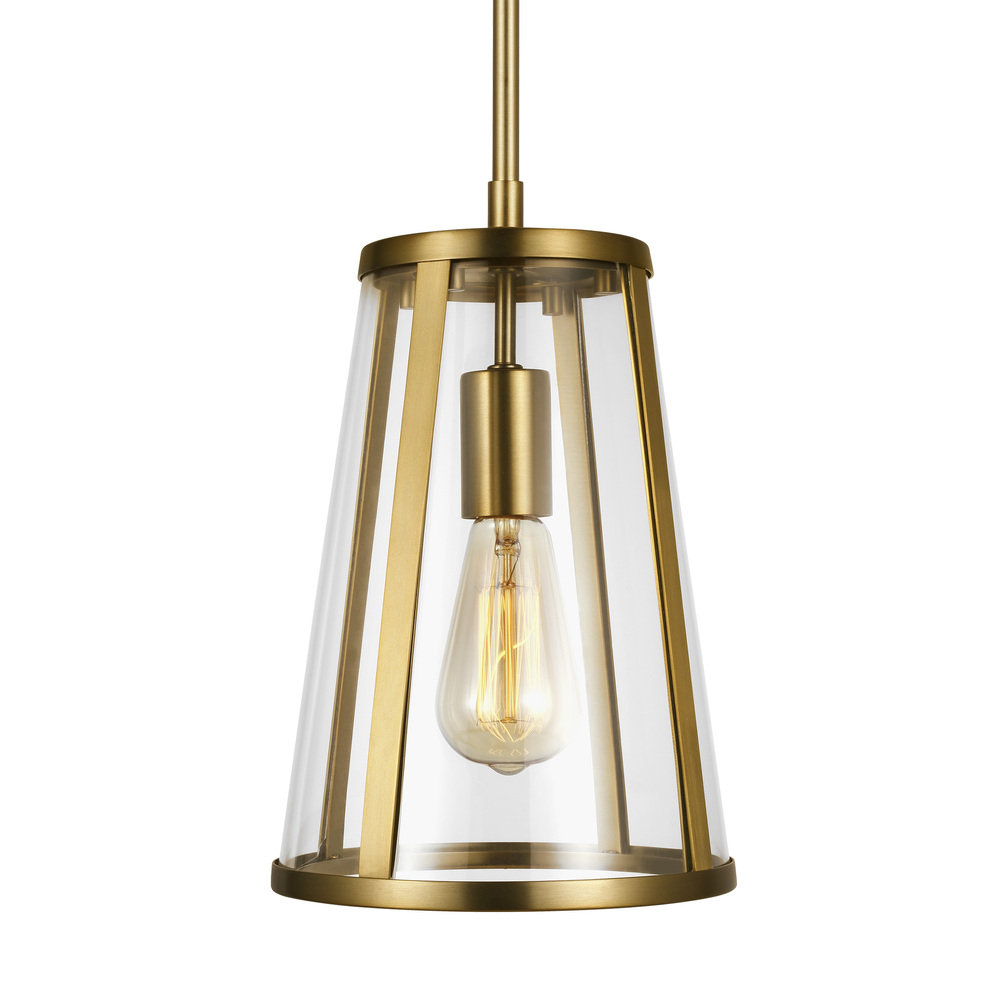 Combining the traditional profile of a tapered shade with on-trend Clear Seeded glass, the sleek frame and the square-linked chain give the Harrow pendant light collection an elevated, contemporary, transitional look. The wall sconce is delivered with two glass options, Clear Seeded and Opal Etched, for the customer's choice to customize. Burnished Brass, Oil Rubbed Bronze, and Polished Nickel finishes are available to create completely different looks.