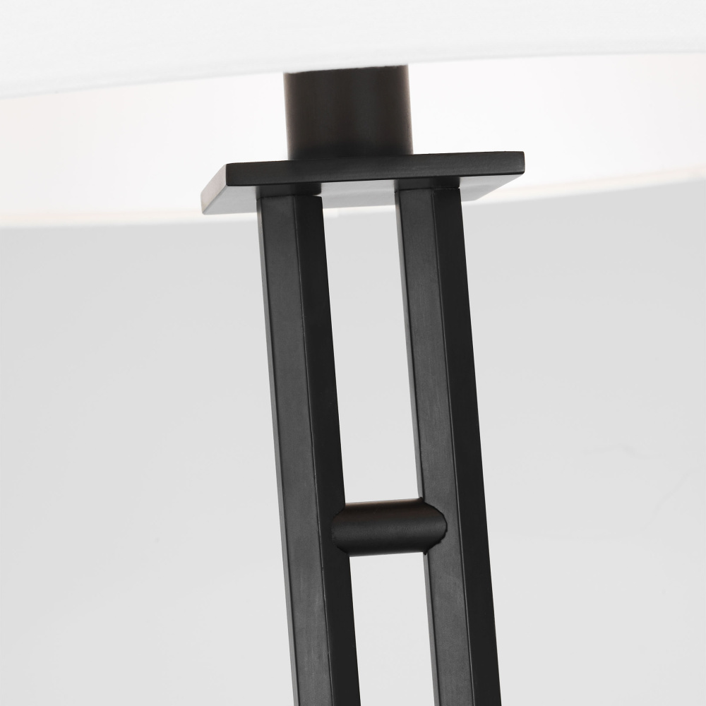 The Haddon floor lamp cuts a striking form. Made from metal in an Aged Iron finish, its twin pillars feature knurled texture detailing with a ladder design in the center. Its balanced proportions match its round white linen shade. This charming design is a perfect accent for bringing elevated style to a modern, luxurious living room. Place the Haddon in a home office or in a library to bring geometric intelligence to the space