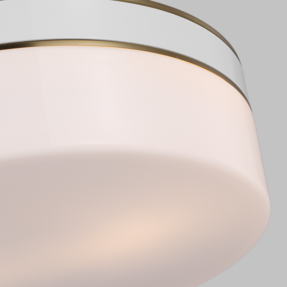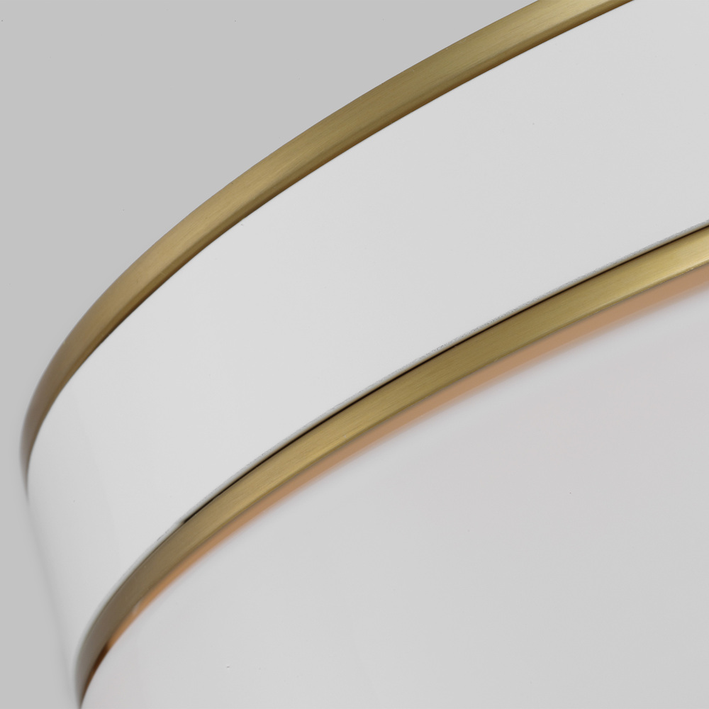 The Monroe large flush mount is inspired by graphic enameled metal jewelry and decorative accessories from kate spade with a nod to late 50s atomic era colorful designs. Monroe exhibits clean lighting profiles and dressed them up with painted sections and metal accents.