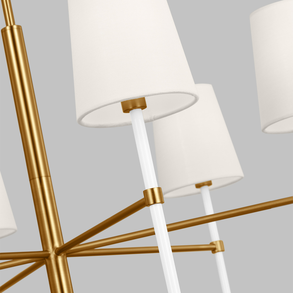 The Monroe medium chandelier is inspired by graphic enameled metal jewelry and decorative accessories from kate spade with a nod to late 50s atomic era colorful designs. Monroe exhibits clean lighting profiles and dressed them up with painted sections and metal accents.