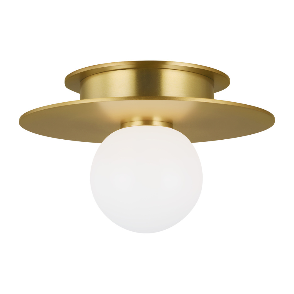 Nodes task, ceiling and wall lighting is minimal yet bold, highlighting Kelly's distinctive juxtaposition of mixed-materiality and curvilinear form. Light radiates from milk glass globes set against metal discs. All fixtures can be used or without the discs. The cast canopy is available in Burnished Brass or Midnight Black. Hanging fixtures within this family feature black fabric cords, while pivot sconces can be cord and plug or hard wire.