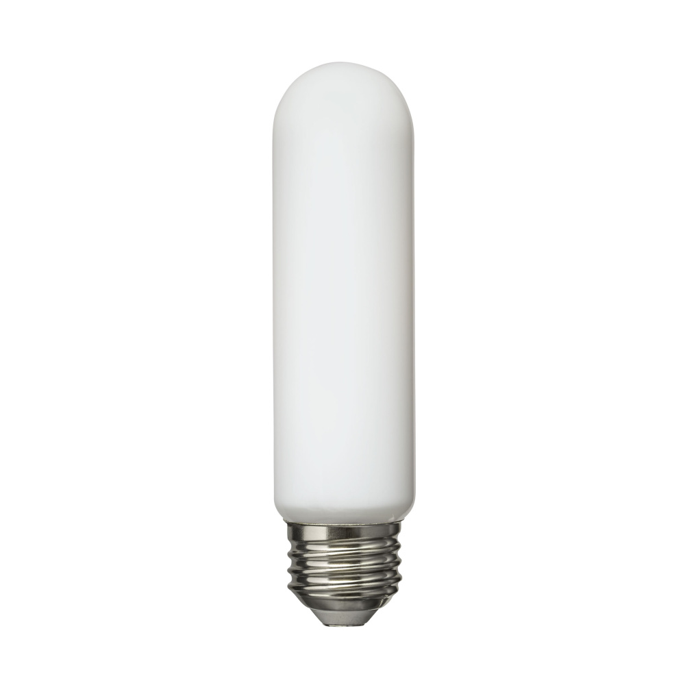 Frosted T10 4W LED bulb with 350 lumens of warm 2700K light; smooth light for display or accent.