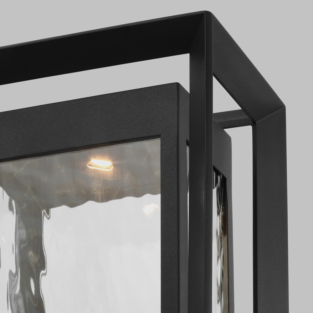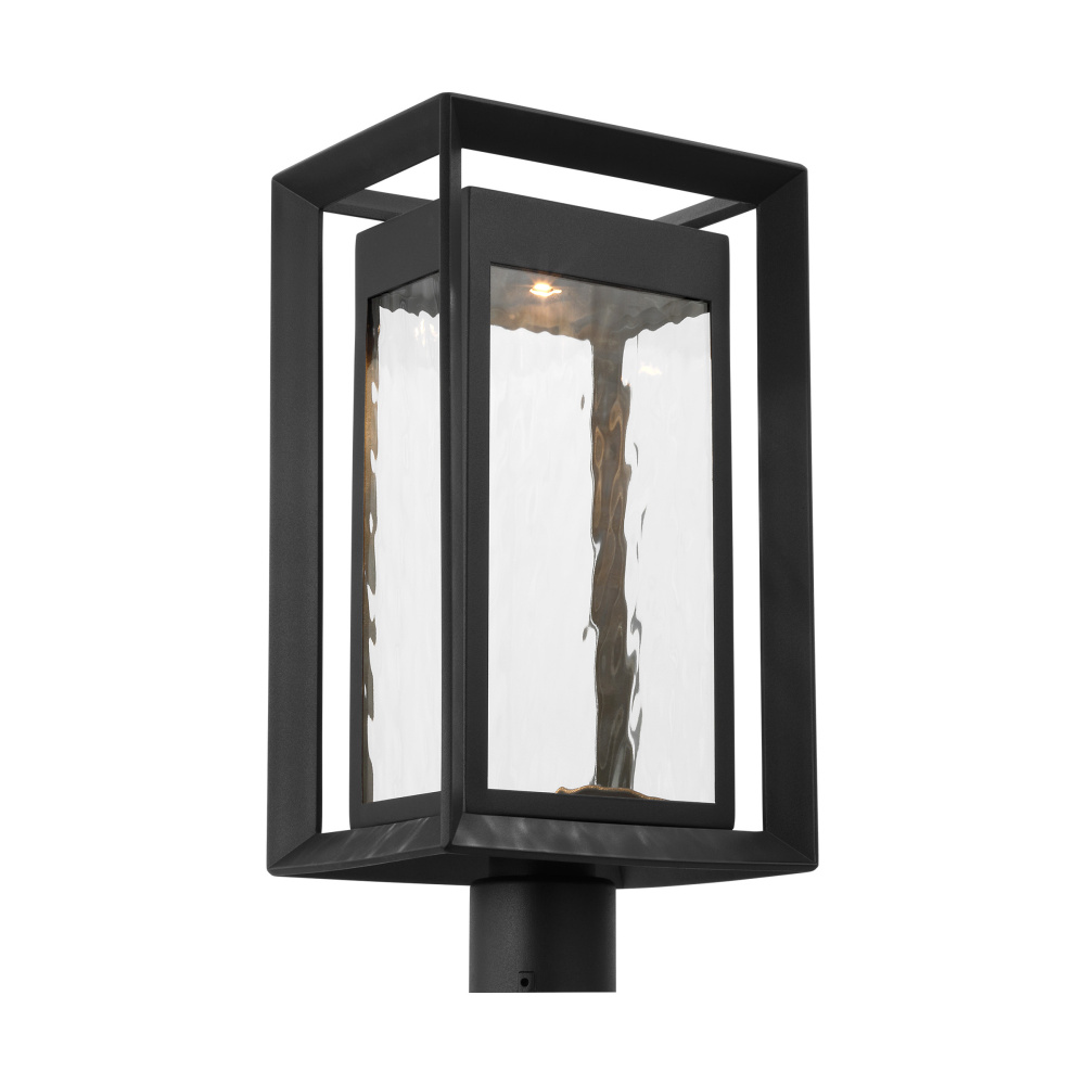 The Urbandale one-light outdoor post top in textured black creates a warm and inviting welcome presentation for your home's exterior. The Urbandale outdoor collection has a modern design that features beveled edges achieved with the fine precision of crisp die-cast construction. Both incandescent and LED versions are available, each offering a slightly different aesthetic. The incandescent version is offered in the Antique Bronze finish, which nicely contrasts with the Painted Burnished Brass finish on the squared-off candle holders and Clear Seeded glass to subtly obscure the light source. The LED version is offered in an Antique Bronze and Textured Black finished with Clear Water glass.