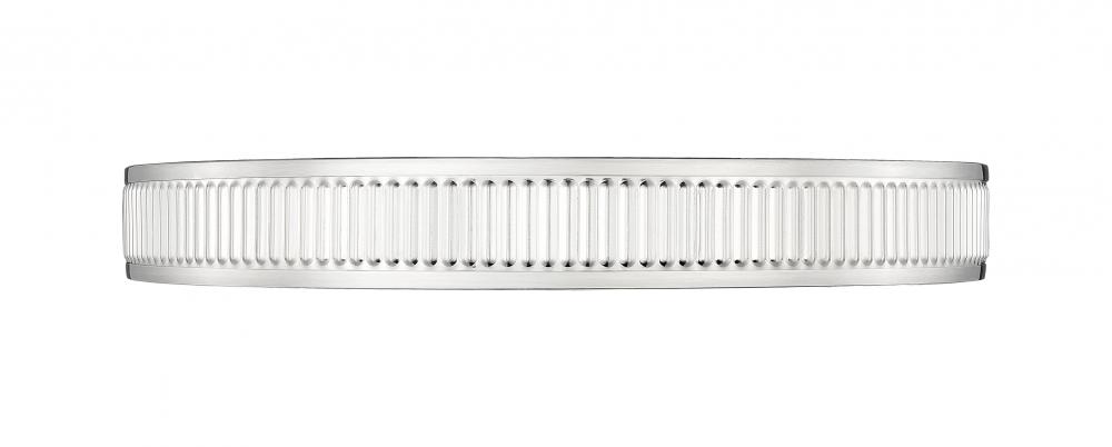 Delicate ribbing creates an undulating frame for this modern flushmount ceiling light. In a brushed nickel finish, its a generously sized design with integrated LED lighting thats energy efficient for your eco-friendly home. A frosted acrylic diffuser softens illumination for excellent lighting.