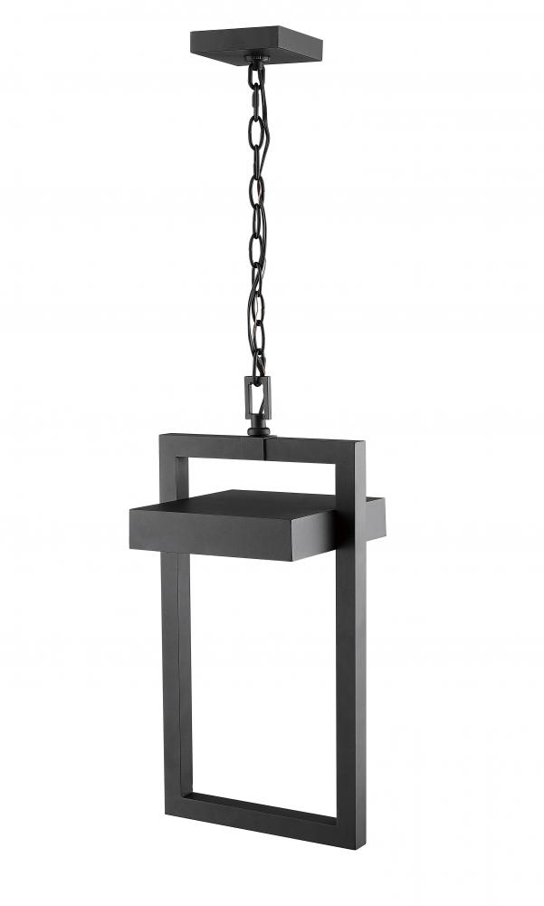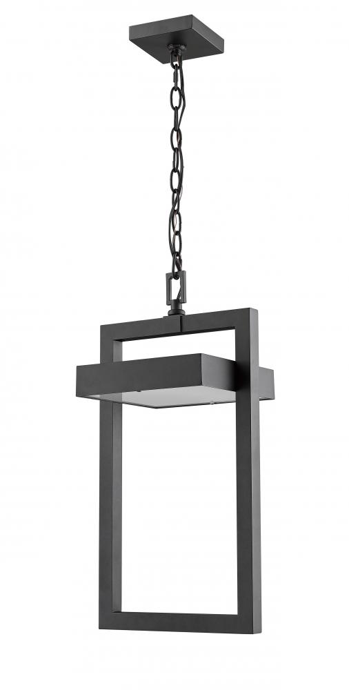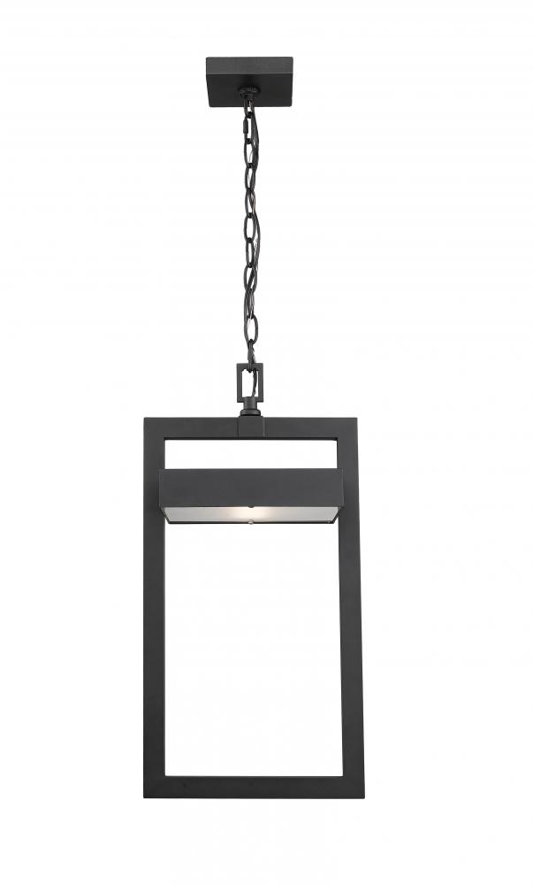 Delivering a tasteful and interesting effect of floating rectangles, this fresh, contemporary outdoor chain mounted ceiling fixture dresses up a gazebo or patio space. Ultra-modern and designed with clean lines and angles, its black aluminum frame and frosted glass shade offer extra style bonuses.