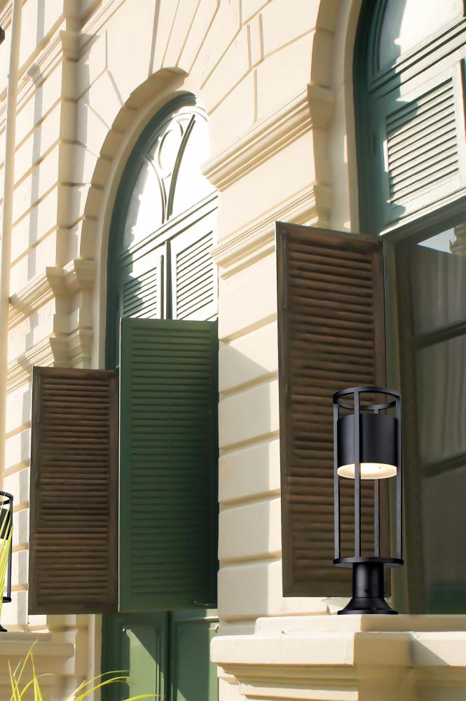 Attention to detail and a bold finish merge to create a compelling look in exterior lighting. Choose this one-light outdoor pier mounted fixture from the Luca series, embracing an openwork cylinder frame featuring black aluminum with an etched glass diffuser. LED lighting offers energy efficiency to embellish its value.