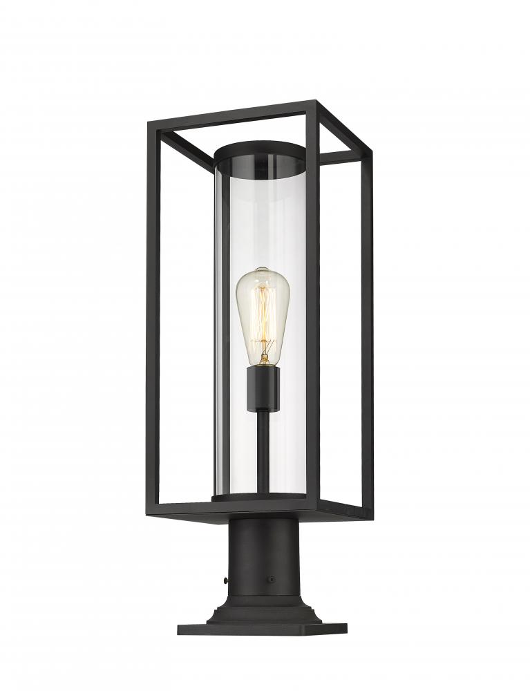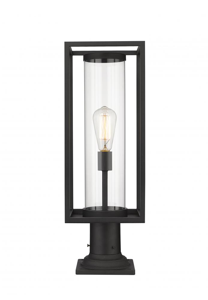 Illuminate your exterior entertainment areas with this modern outdoor pier mounted fixture from the Dunbroch collection. Attach this classy light fixture to walkway columns and corner posts for a striking contemporary vibe, especially with its understated, open rectangular aluminum lantern. This outdoor lantern also features a dark black finish that lend itself to practically any building facade color combinations, as well as a single light sheathed by a clear cylindrical glass globe to illuminate spacious porches and verandas.