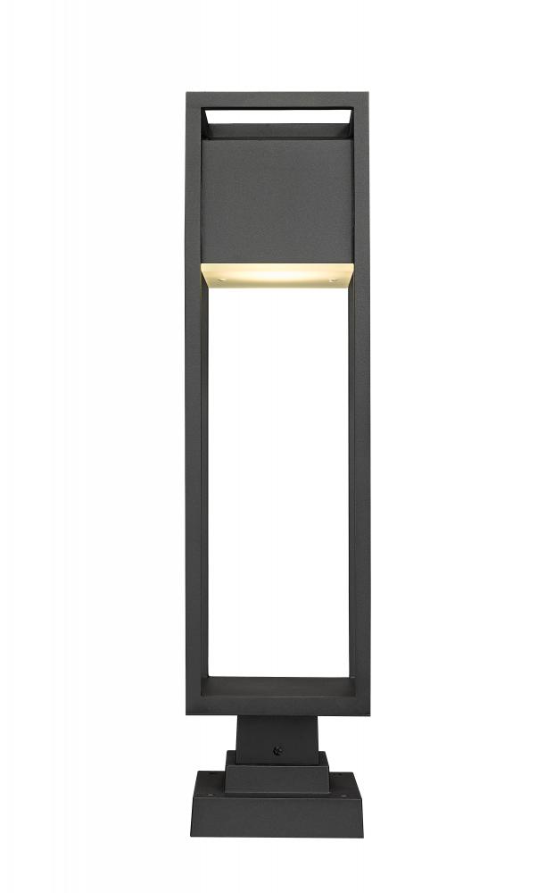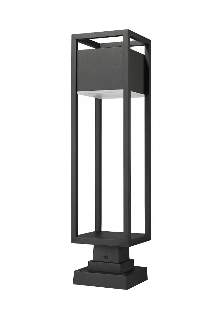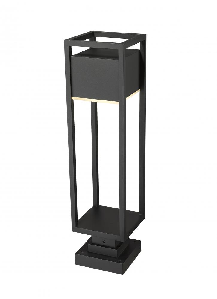 From the Barwick collection comes this modern outdoor pier mounted fixture, perfect for securing to walkway columns and deck corners for a warm, soothing glow. Featuring an open and airy, cage-like aluminum frame in a deep black finish, this pier mounted light fixture lends itself nicely to practically any existing architectural elements and facades. In addition, its sophisticated design also features an etched glass plate which covers an energy-efficient LED-integrated lamp.