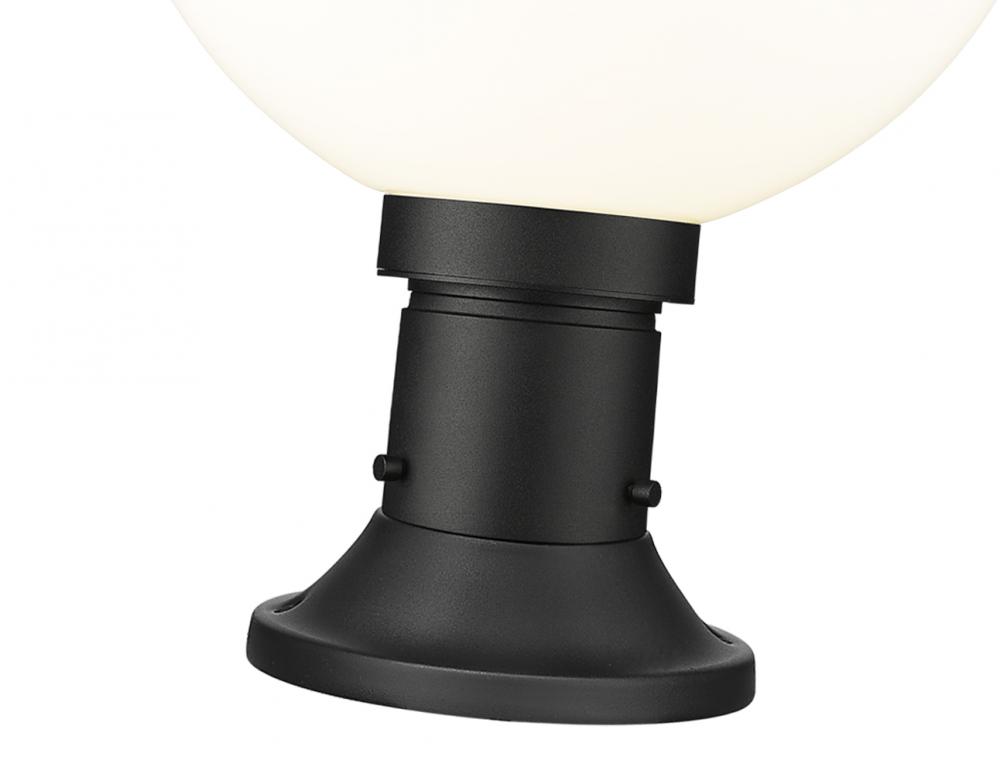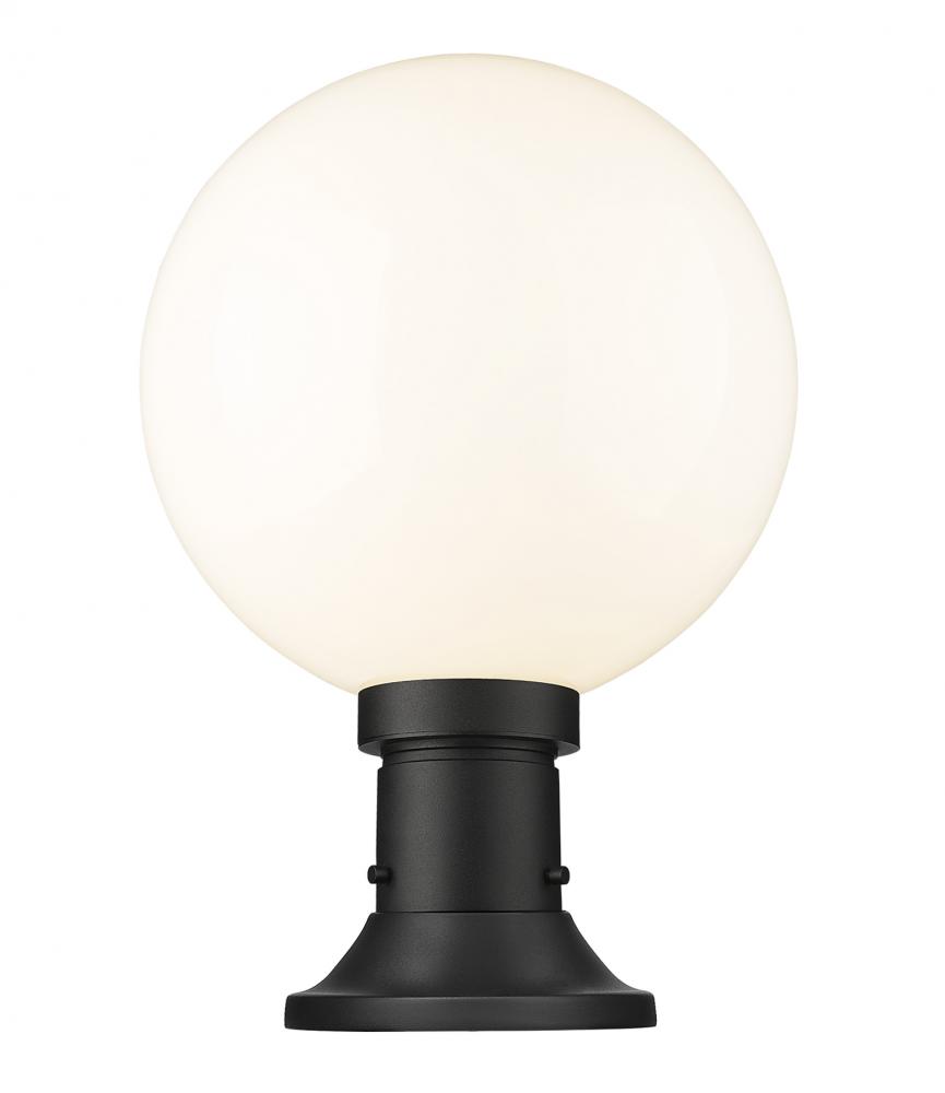 Mid-Century Modern vibes enrich this exterior light fixture, creating a stark palette contrast and a retro-inspired dose of festivity. From the Laurent collection comes a one-light outdoor pier mounted fixture delivering no shortage of personality and a quaint look ideal for gardens and walkways. This light fixture features construction of versatile black finish aluminum and is topped with a festive opal glass globe.