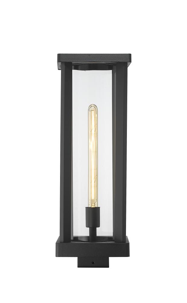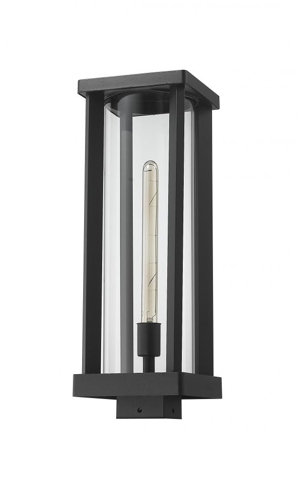 A part of the Glenwood outdoor lighting collection, this ultra- modern and stylish post mounted lighting fixture can be secured along deck and patio railings to illuminate an entertainment area for hosting parties and family dinners al fresco. Its cylinder-shaped clear glass globe is encased within an open aluminum lantern frame, which has an alluring, deep black finish. This post mount fixture also offers an understated, yet contemporary flair that complements your homes existing facade and building materials.