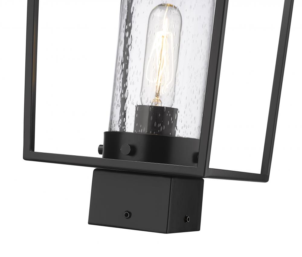 This one-light outdoor post mount fixture creates a fresh, stylish updated village motif as it provides a superb replacement to top an existing post. Embrace a romantic lantern silhouette in an open frame fashioned of black finish aluminum & steel, admiring a delicate seedy glass cylinder shade nestled within. Weather-resistant materials offer confidence for placing this fixture in a variety of regional settings.