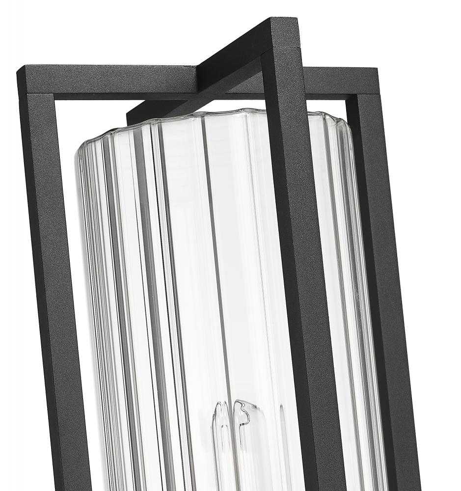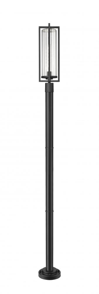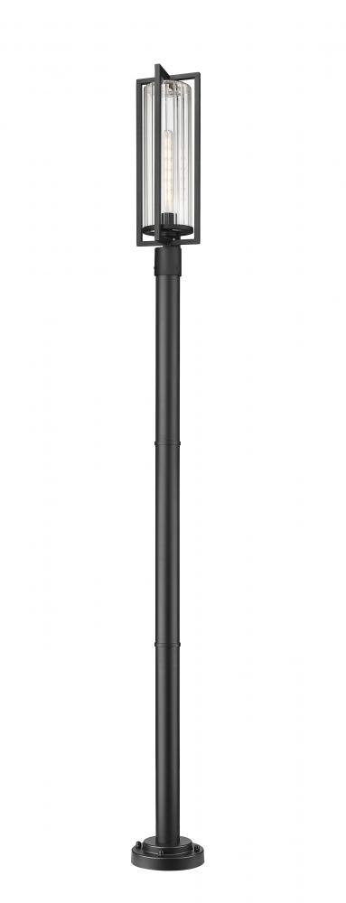 An elegant and timeless look delivers dimensionality and simplicity with a statement-making impact as this outdoor post-mounted light combines modern and transitional design possibilities. Coastal black painted aluminum is smooth and bold as it creates an openwork frame around a ribbed glass cylinder shade offering a sleek texture. This stately outdoor light embellishes the sophisticated look of a custom front or back yard.