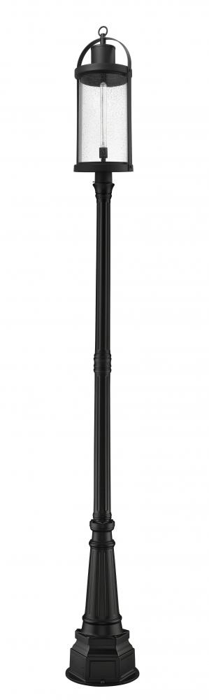 This one-light outdoor post mounted fixture will revitalize the look of your garden or walkway space with its lantern-like features and modern character with classic flair. Black finish aluminum composes the elegant, subtly flared post with its circular base, and caps the top and bottom of a cylindrical shade complete with eye-catching clear seedy glass. LED bulbs effectively illuminate your space, making this a clear choice for sleek, energy-efficient exterior lighting.