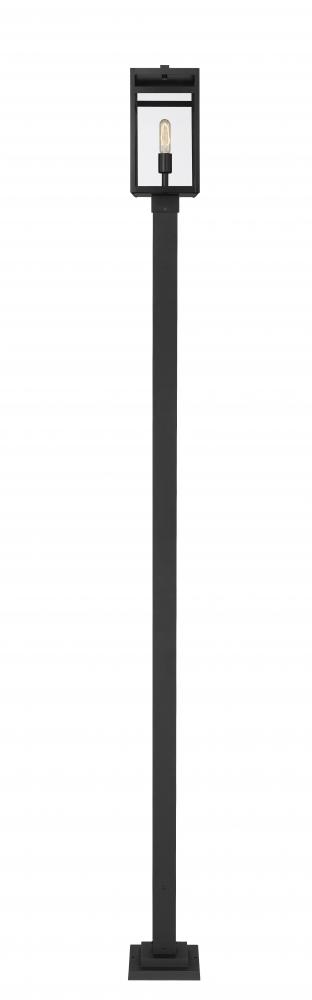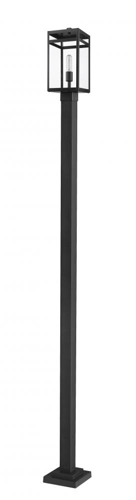 Embrace a slightly minimalist feel with intersecting linear elements in a fixture designed to update exterior spaces. The Nuri one-light outdoor post mounted fixture blends a box-style frame and post made of black finish steel with clear glass panels and a slender bulb base, adding an endearing transitional look to a residential or commercial property.