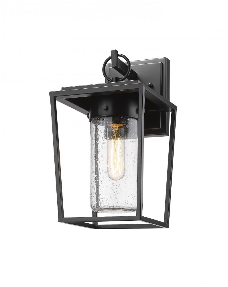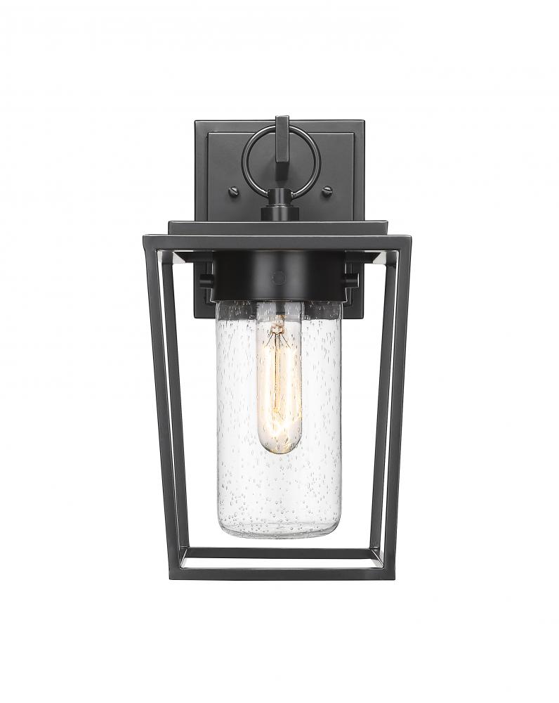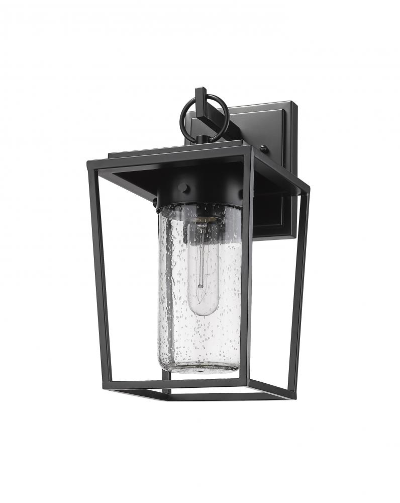 Replace conventional exterior lighting with a design fit for a custom structure. The Sheridan outdoor wall sconce offers ambient and targeted lighting with an open, boxy frame that borrows from village-inspired lantern aesthetics. A seedy glass cylinder shade produces illuminating glow, making this overall design a worthy choice.
