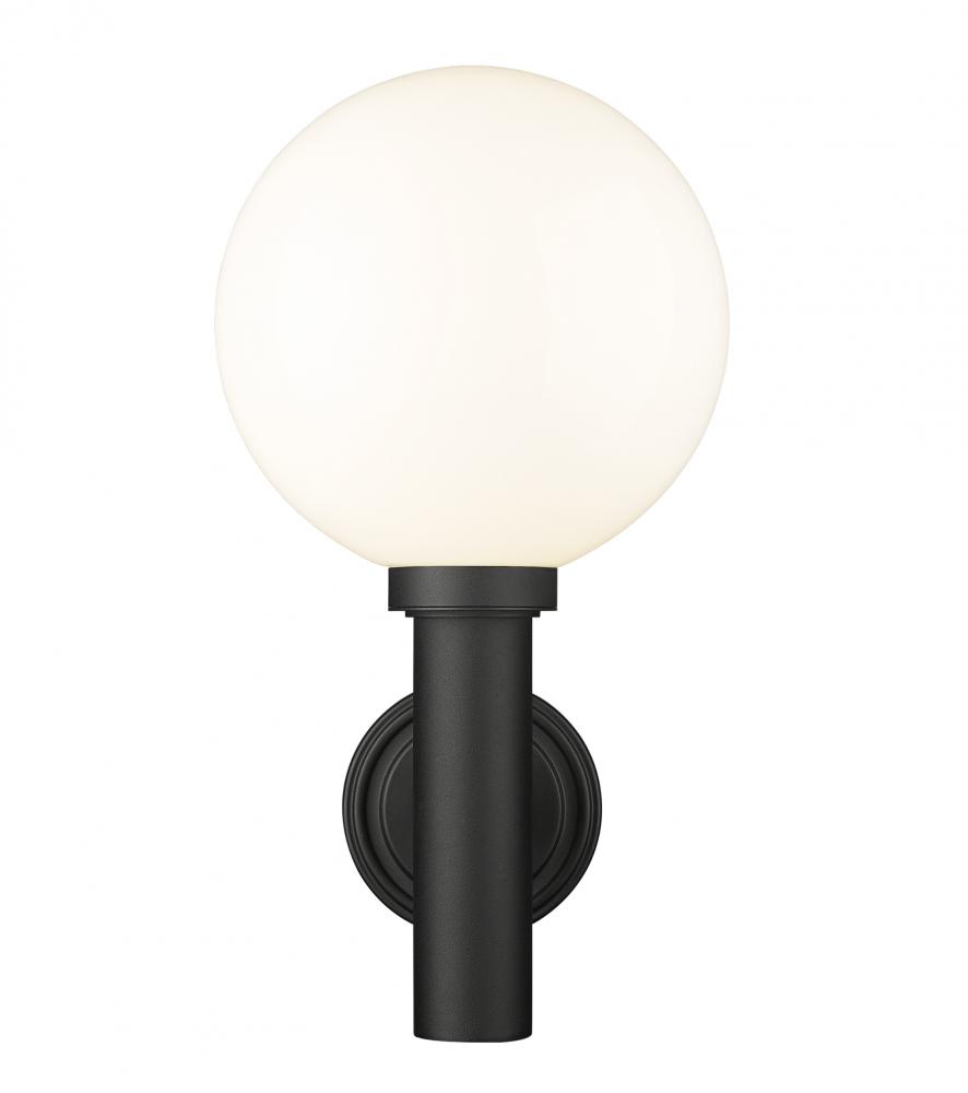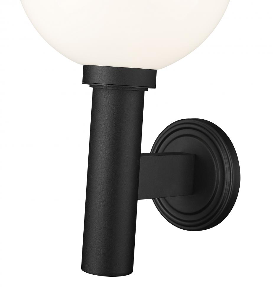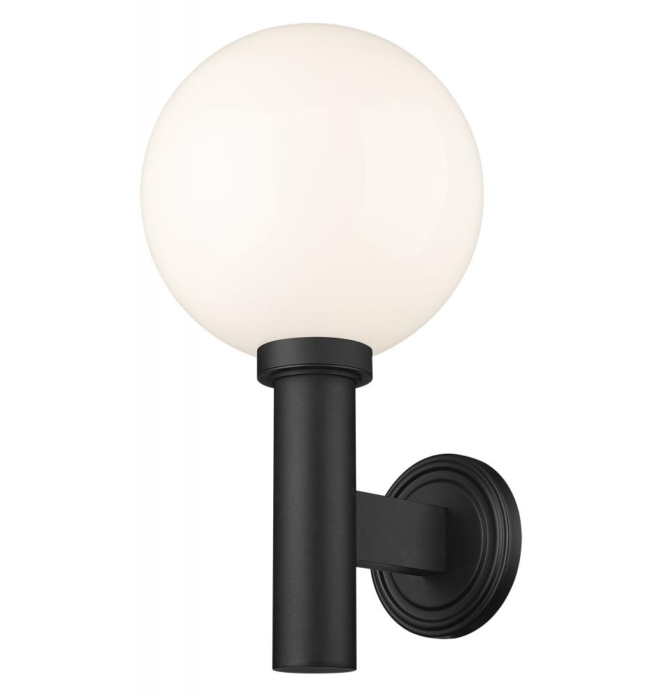 Grab a bit of Mid-Century Modern inspiration to achieve a festive feel in exterior lighting. From the Laurent collection comes a one-light outdoor wall sconce offering a retro-influenced motif and a dose of Art Deco attitude. Dressed up with an opal white glass globe shade positioned on a cylindrical black finish aluminum frame, this fixture delivers eye-catching palette contrast and a charming way to illuminate a patio, porch, or deck area.