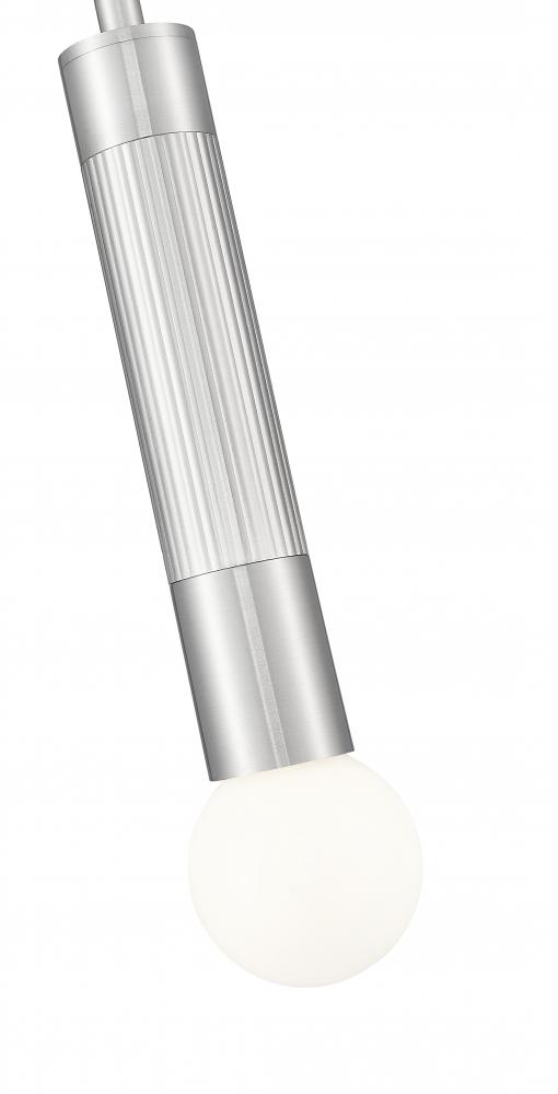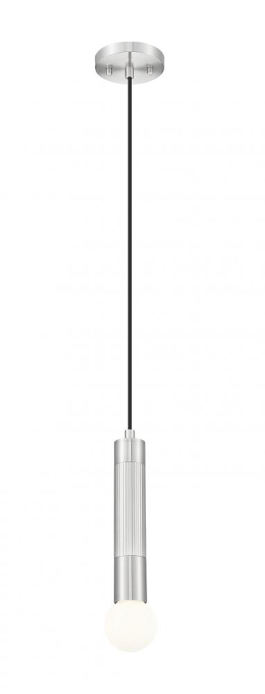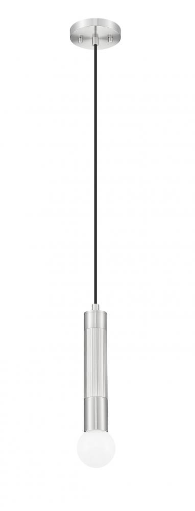 Chic brushed nickel creates gleaming allure for a modern pendant light. Its a perfect solution for small spaces, and looks beautiful grouped to create a larger lighting installation over a kitchen island or elsewhere in your home. A slim cord and petite light enhance its streamlined silhouette with graceful aesthetics and lovely ambiance.