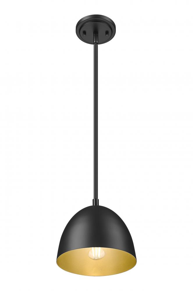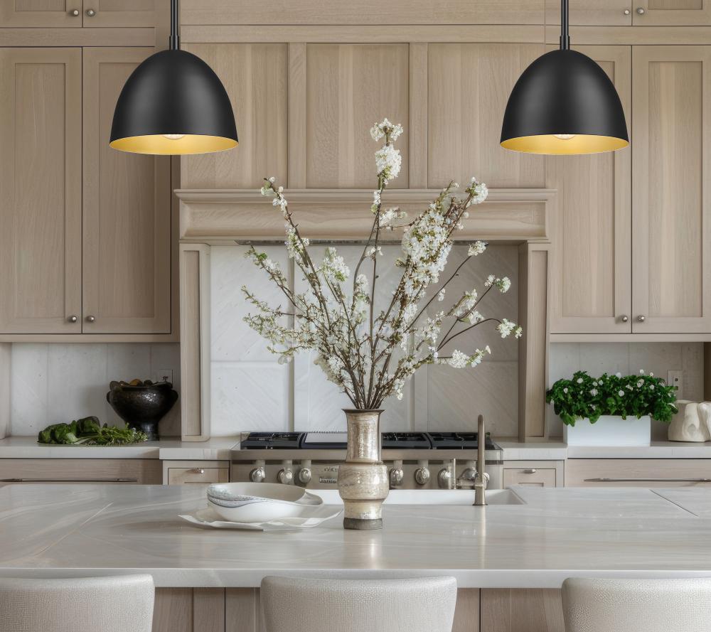The charming motif of a simple dome silhouette makes a perfect solo or row of fixtures, and this one-light pendant offers a perfectly casual yet tasteful look. Both farmhouse and industrial influence drive the design of a matte black steel light with an iconic dome shade and straight down rod. Elegant gold lining adds extra warmth to dimmable lighting delivering options for illumination levels.