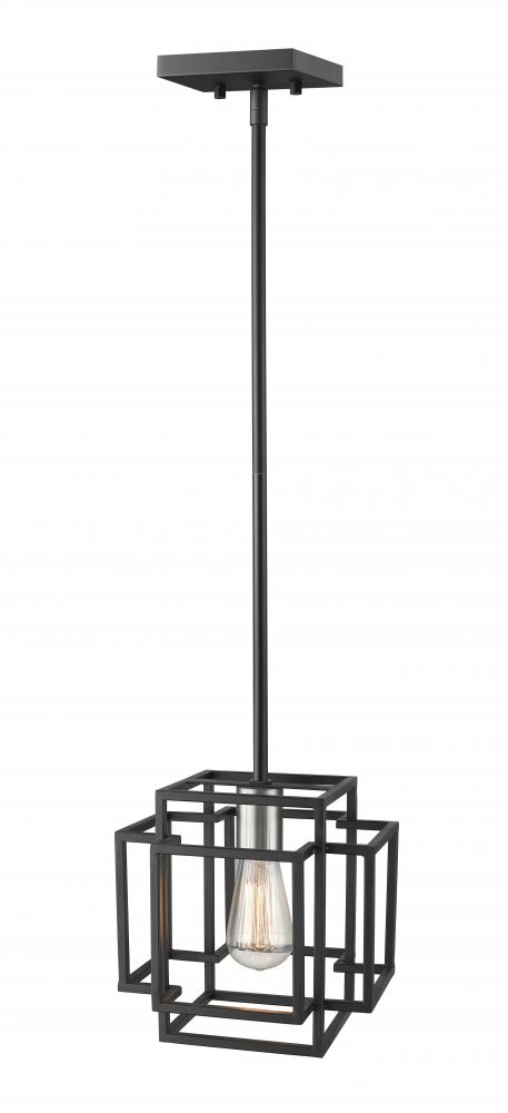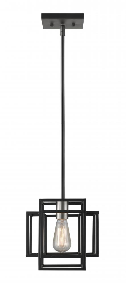 Enjoy the long lines and crisp motif of this one-light mini-pendant. Built from steel and given finishes in black and brushed nickel, its charming candelabra-style bulb base offer a tasteful contrast to a linear, architectural silhouette and provide essential design versatility.