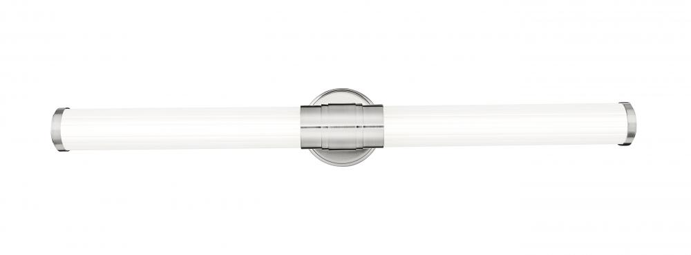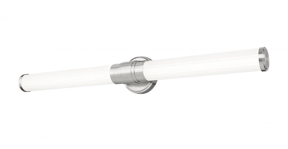 Slender ribbed glass diffusers and a stepped design on the metal arm bring a modern flair to the Warwick bath collection. These fixtures are equipped with the latest energy-saving LED technology, dimmable, light color selectable (5 choices), and a 5-year