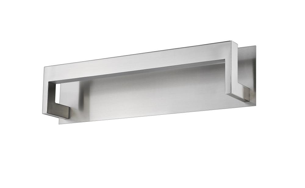 Go full throttle into a commitment to contemporary d?cor with this stylish brushed nickel vanity fixture. A single light with a frosted diffuser adds to the sophisticated linear design and features energy-saving integrated LED technology.