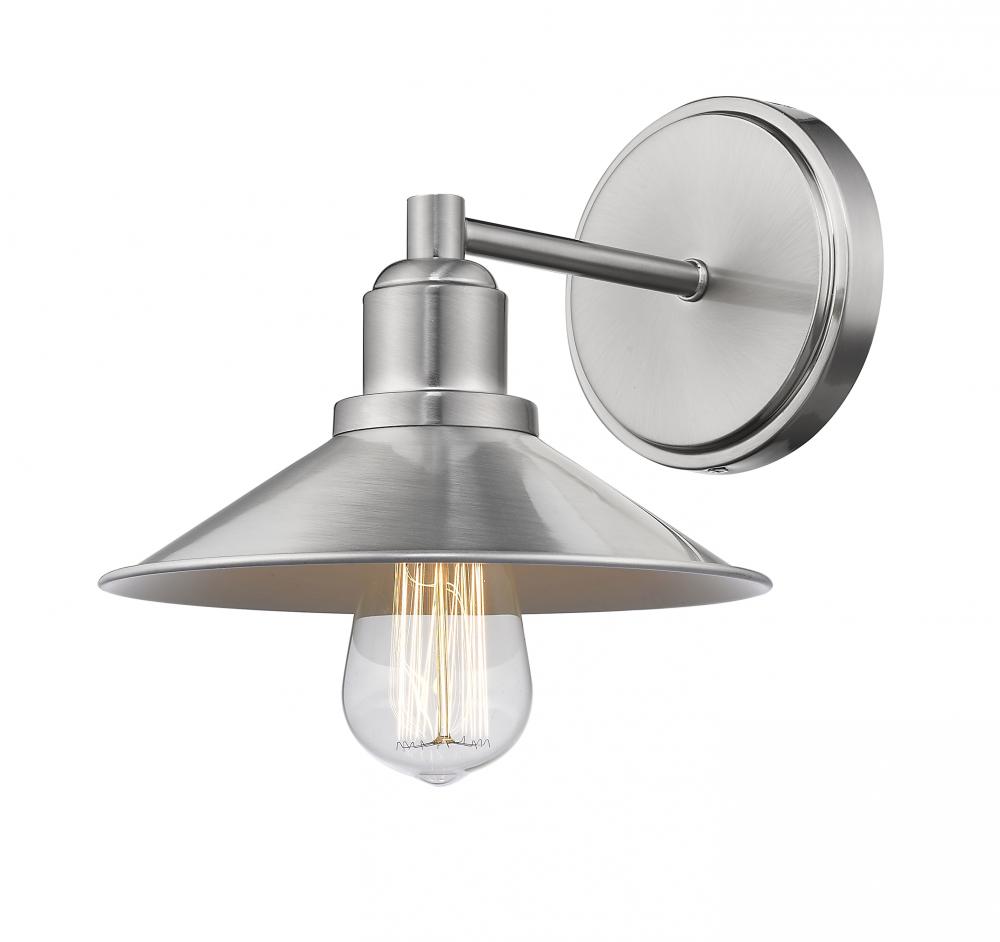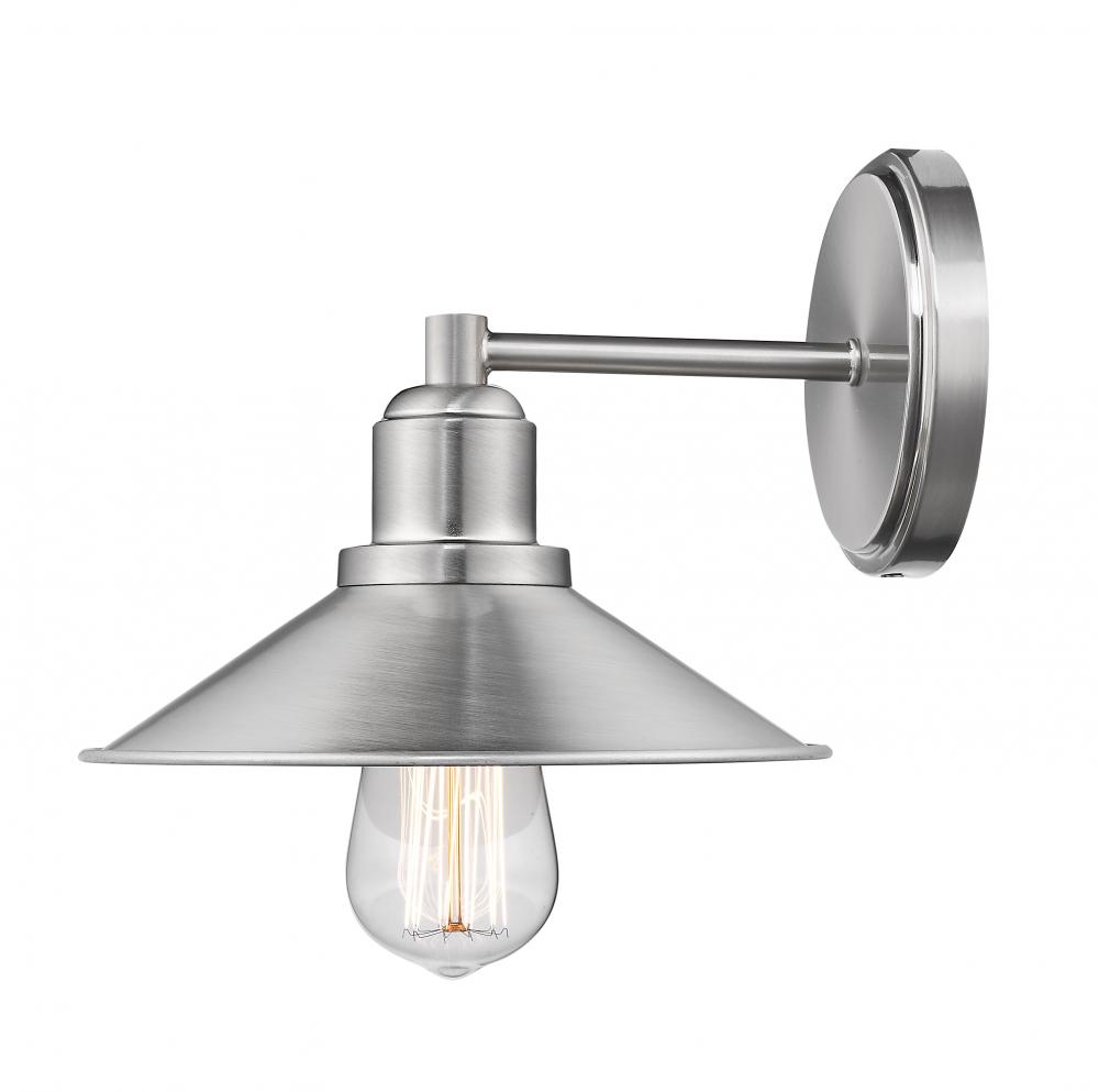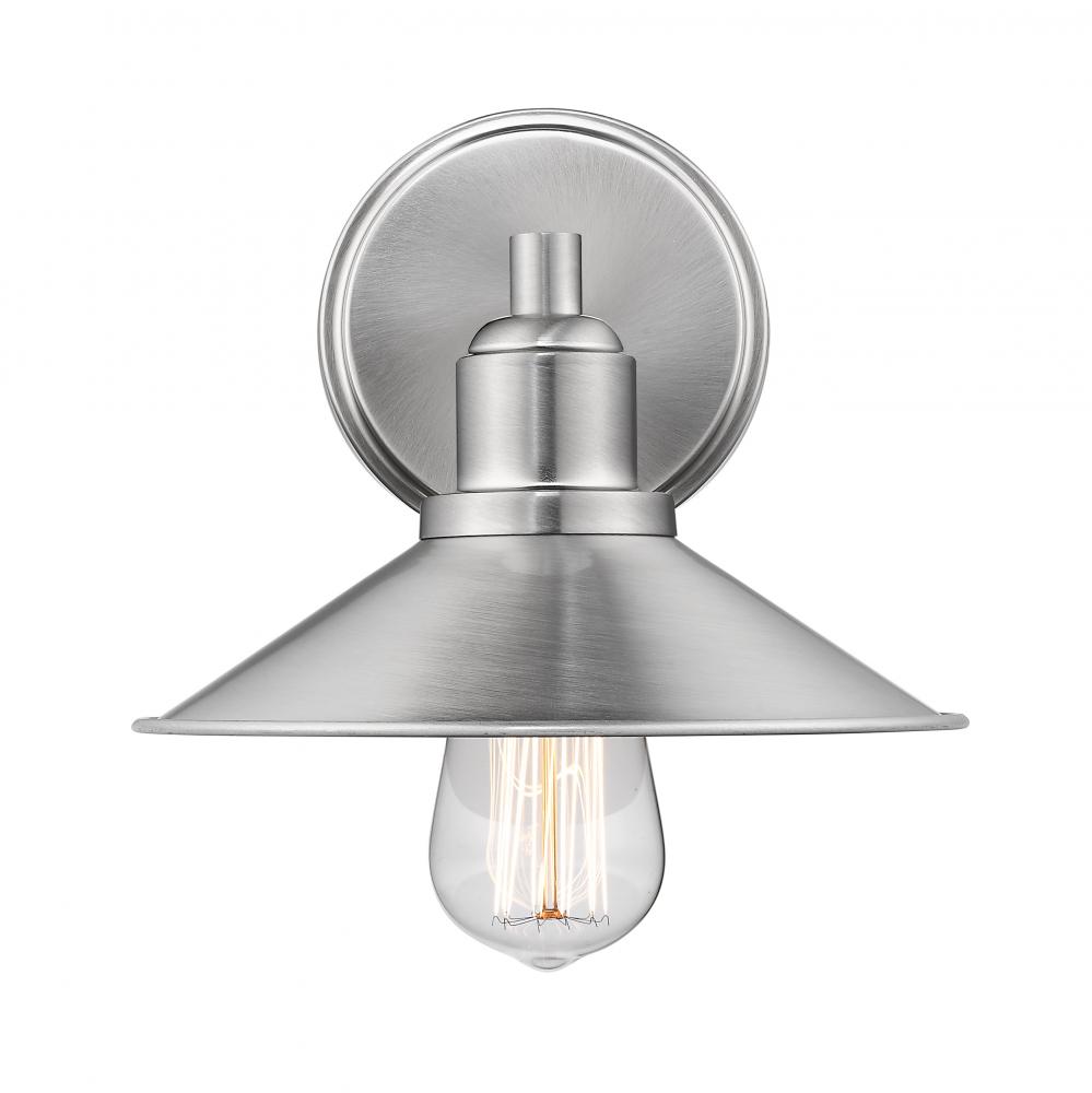 Lift the mood in any space with the sleek look of this one-light vanity fixture. Its brushed nickel steel build shows off a charming vintage bulb, creating an antique-inspired aesthetic with a ton of personality.