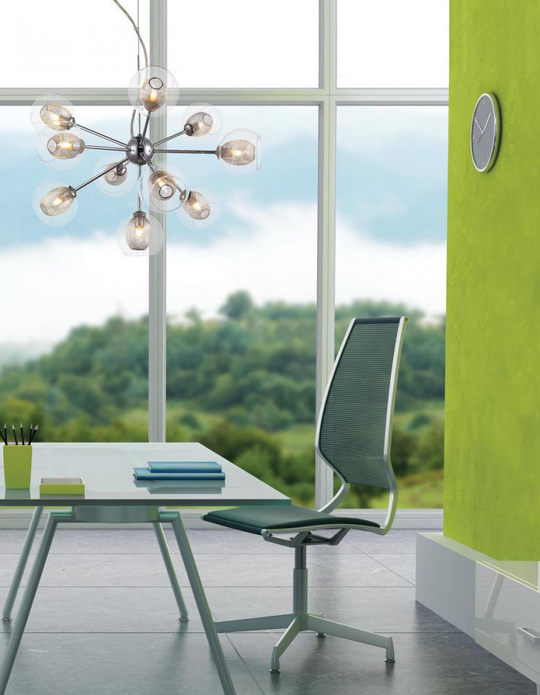 This 10 Light Chandelier will bring modern elegance to your d?cor. The chrome fixture is paired with clear glass.