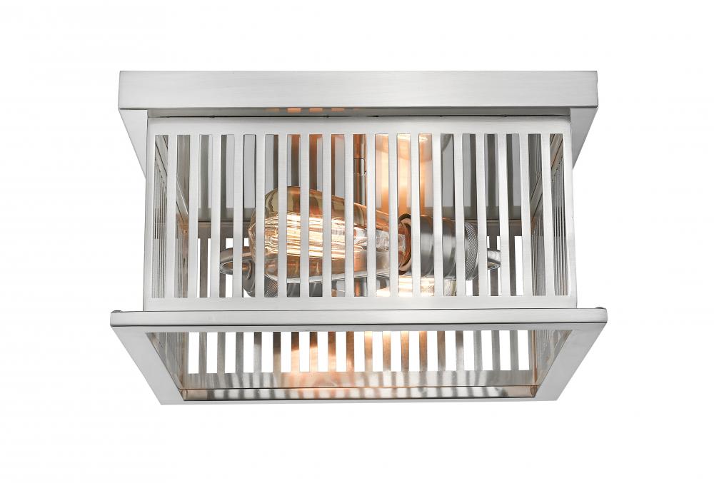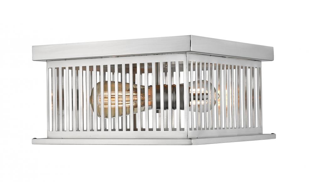Capture the architectural character of industrial fare with this two-light flush mount ceiling light. A linear grill design in brushed nickel finish steel brings a geometric twist to soft vintage d?cor.
