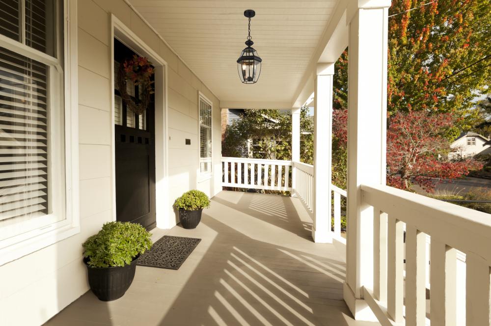 This two-light outdoor chain mount ceiling fixture adds a classic silhouette to the lighting in your patio, deck or porch area. With its candelabra composition, the lamp provides soft, effective illumination. A multi-sided clear beveled glass shade has a black steel frame, creating an elegant impression.