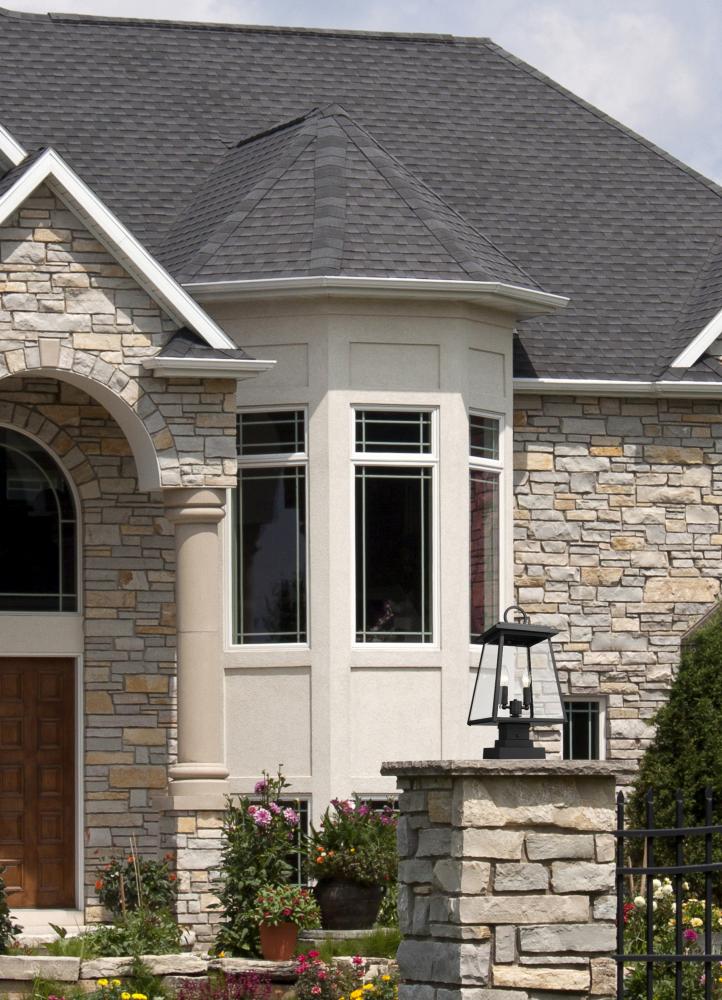 Defying convention, the Broughton series of outdoor lanterns is a well orchestrated craftsmen design with transitional elements. Beveled glass and a decorative loop on the lantern tops are crowning touches, along with stepped design on the top for added di