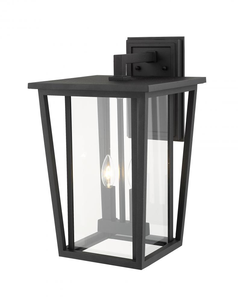 Striking and chic, the Seoul collection of outdoor fixtures updates the classic lantern look and gives it modern makeover. Special cut clear glass panels create a unique geometric look. Finished in either Black or Rubbed Bronze, the Seoul family of fixture