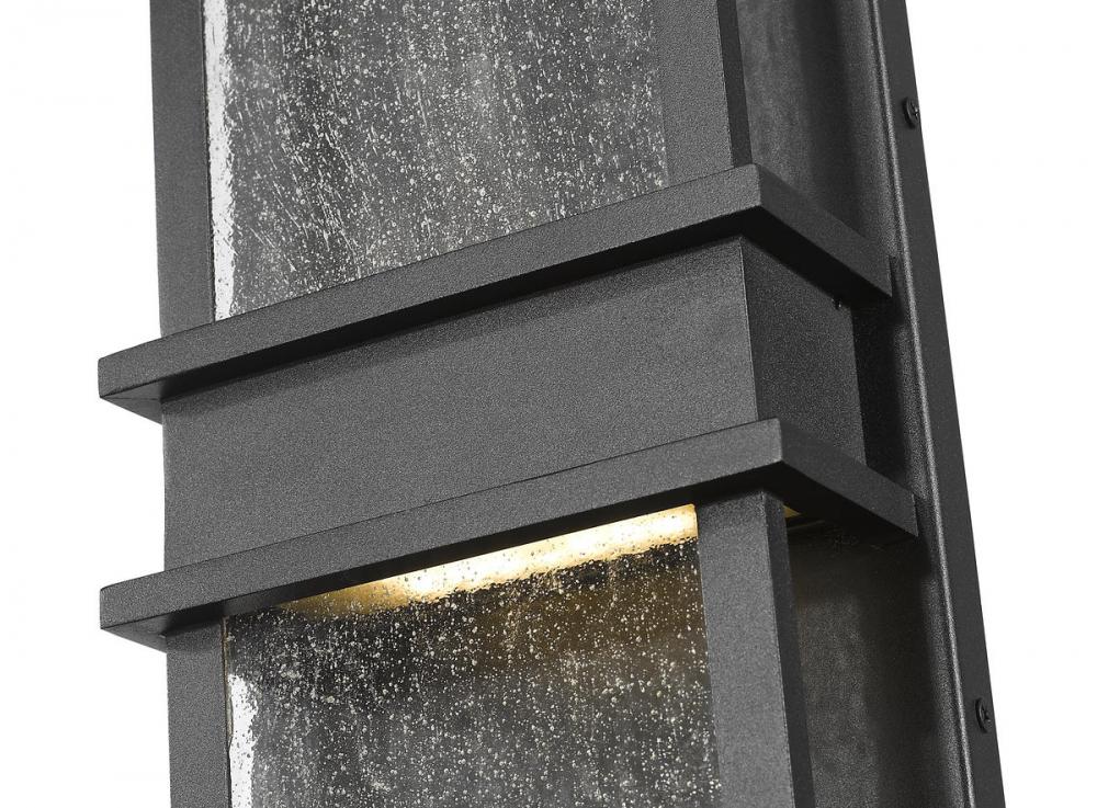 Perfect for illuminating dark areas of your outdoor space, this large outdoor wall sconce is made with aluminum and comes in a black finish. It features an integrated LED light. The seeded glass shade provides an urban inspired appearance.