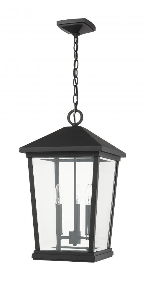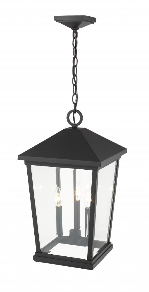 Entertaining in a patio or gazebo space requires plenty of soft lighting. Make this black hanging pendant lantern work, with its charming village theme and clear beveled glass panels shielding old fashioned candelabra-style bulb bases.