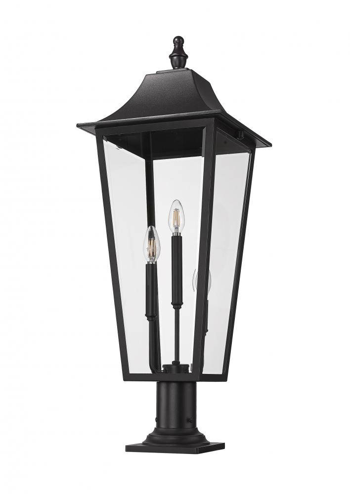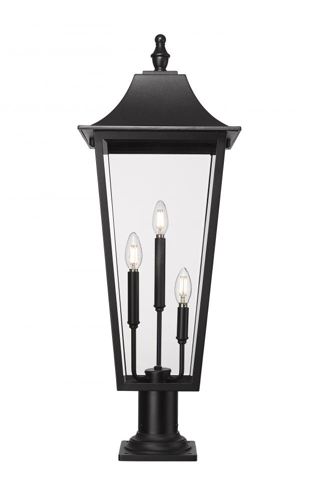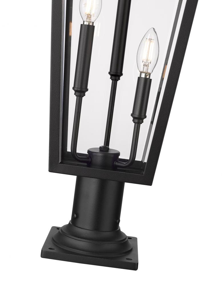 A sloping top and tapering glass panes create a refined silhouette for this traditional three-light outdoor pier mount lantern. Its classic elegance is highlighted with a stainless steel frame and durable Coastal black finish. Clear beveled glass delivers excellent illumination, perfect for a front porch or backyard deck.