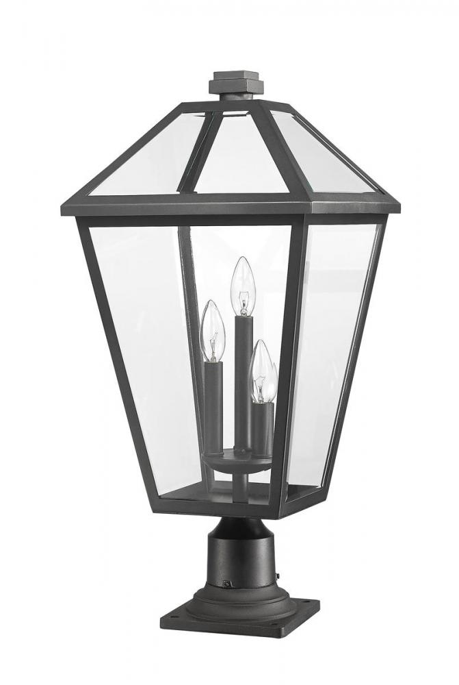 A transitional-style frame with bold glass panels make this a truly timeless collection. Offered in wall mount, pendants and even post lights, the Talbot family is available in two finishes, Midnight Black with Clear beveled glass panels or Rubbed Bronze w