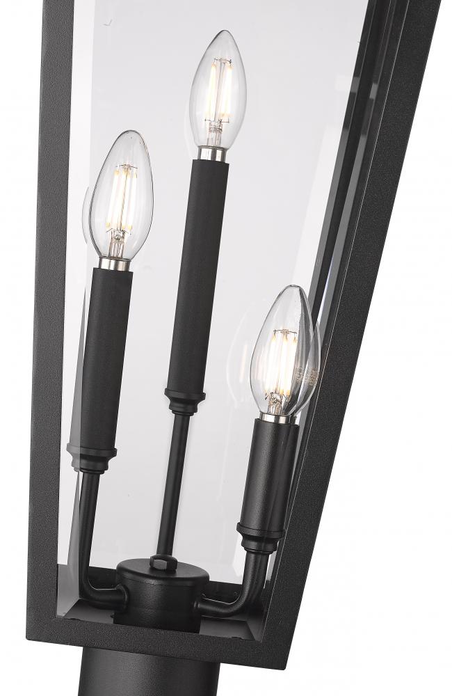 Traditionalism infuses character into an outdoor post mounted lantern. Complete with three lights for bright illumination, it features a fresh Coastal black finish thats designed for durability. A straight, sleek post makes this the perfect choice for a front walkway or to define your landscaping and add a lovely ambiance.