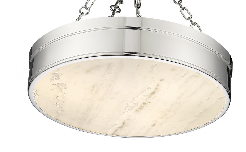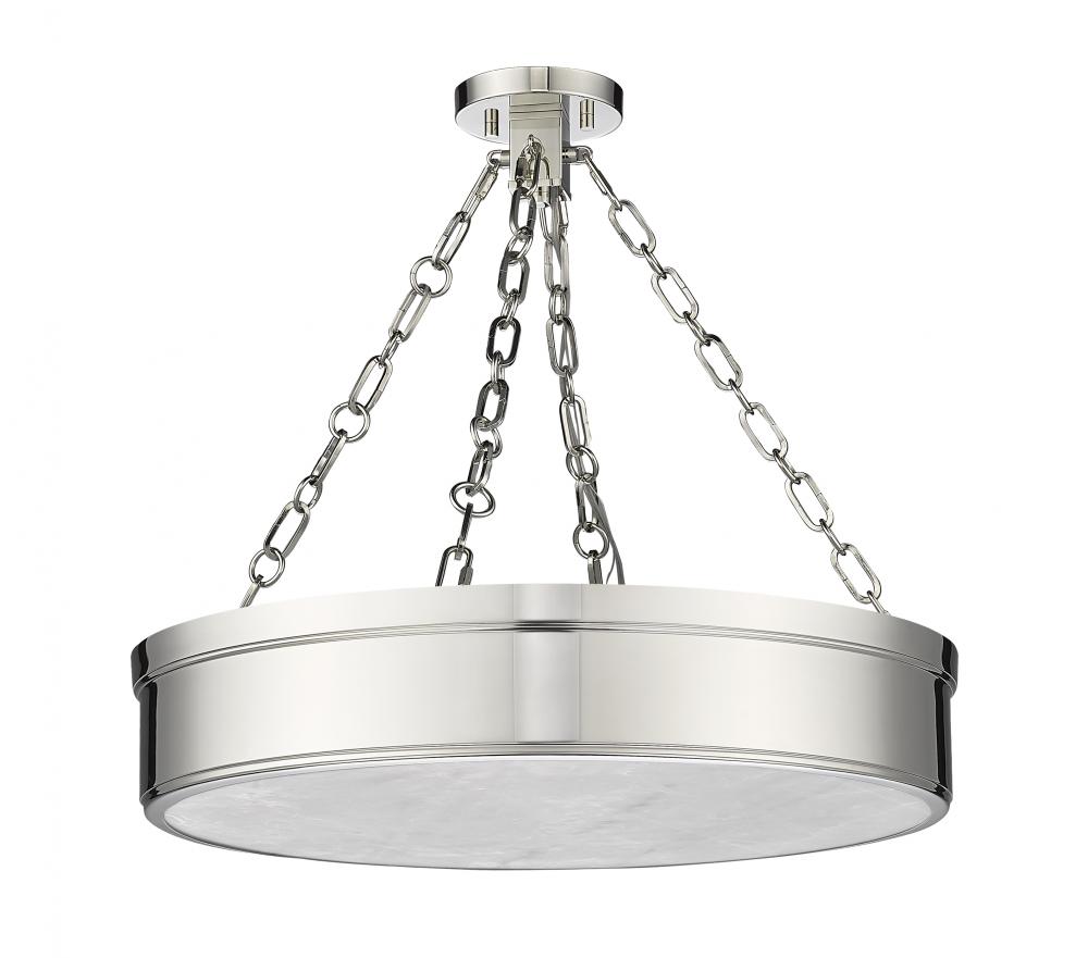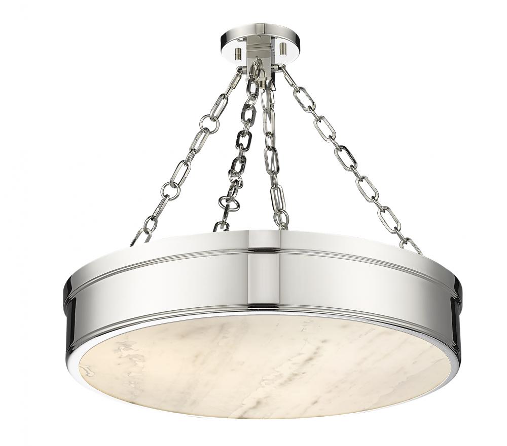 Illuminate a modern or transitional space in style with a light fixture reflecting a host of styles from industrial to architectural to Mid-Century Modern. This three-light LED semi-flush mount ceiling light provides a gleaming quality with a steel frame offering a polished nickel finish and a decadent alabaster diffuser that infuses ambient lighting.