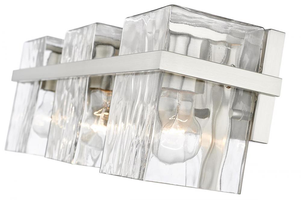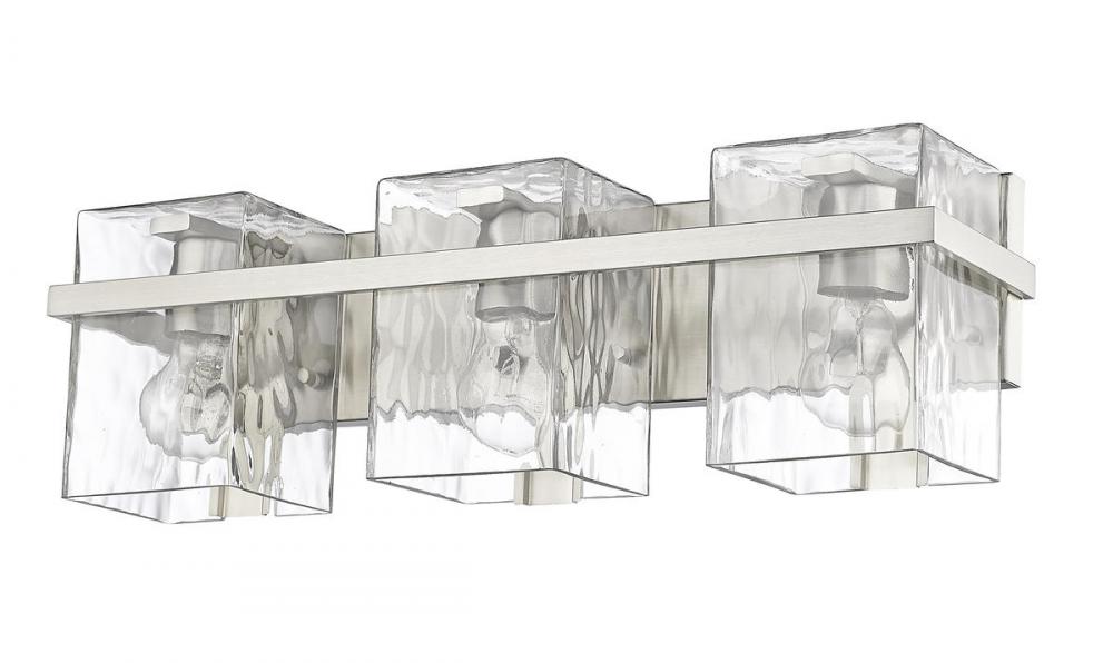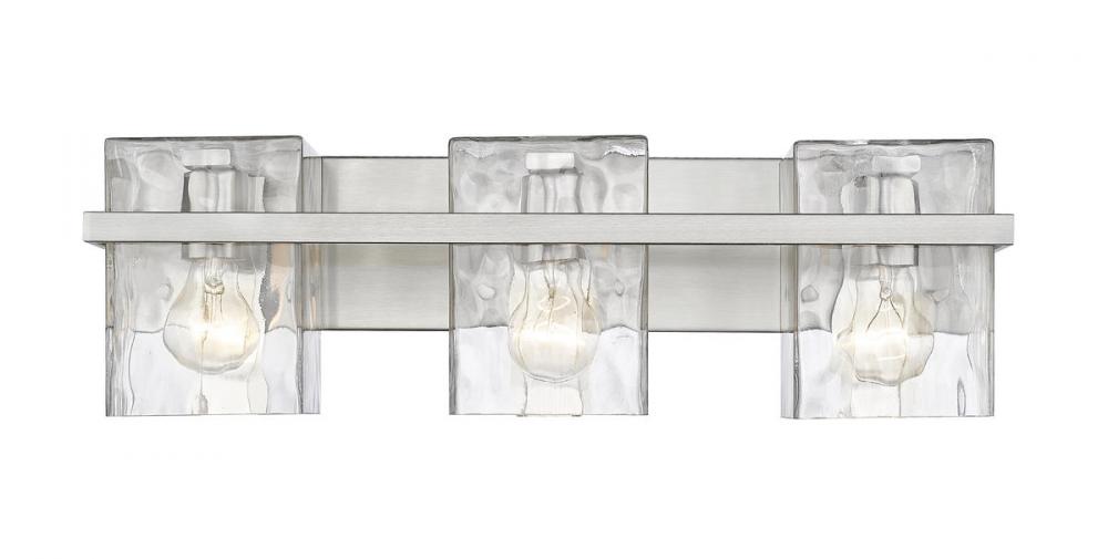 Coming in an alluring blend of versatile style and practical lighting, this three-light vanity with clear glass shades is ready to illuminate your bathroom. The fixtures steel construction is finished in a beautiful brushed nickel, giving it an inviting look that blends with your space.