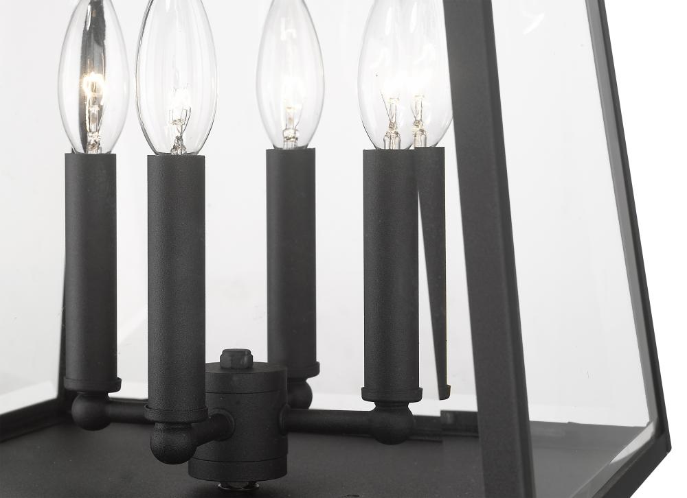 Treat an updated exterior space with a throwback to old time village nautical attitude. From the Broughton collection, this four-light outdoor post-mount fixture offers construction of sleek black aluminum and clear beveled glass panels on its lantern-style shade. Romantic candelabra bulb mounts seal the deal on a tasteful look.