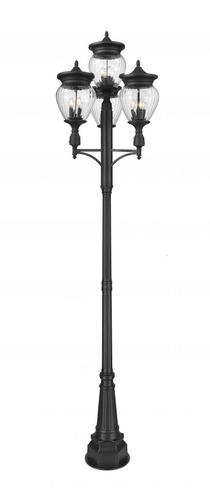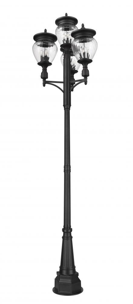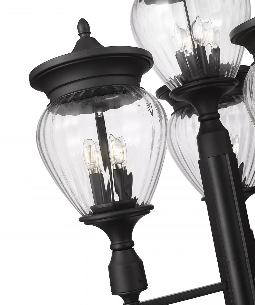 Youll love the vintage character of teardrop glass featured in a charming 16-light outdoor post-mounted fixture. Aluminum construction and a Coastal black finish are durable and stylish, offering versatility to your front walkway or garden path. This charming fixture includes four shades, each with four bulbs within, for a total of 16 lights.
