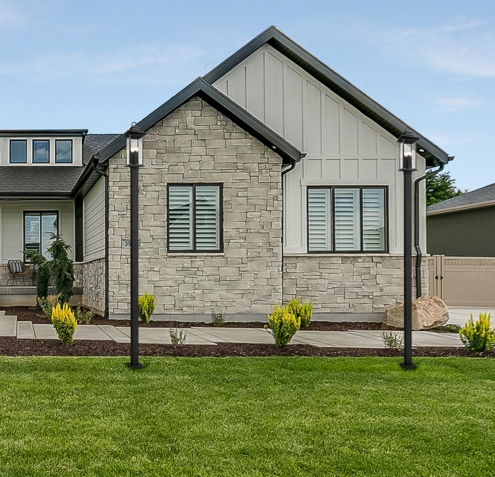 Create an inviting ambiance along an outdoor pathway or garden walk with this transitional post mount lantern. It features aluminum construction with a durable coastal black finish that stands the test of time. The lantern is a clean-lined design complete with clear seedy panels that cast glowing illumination.