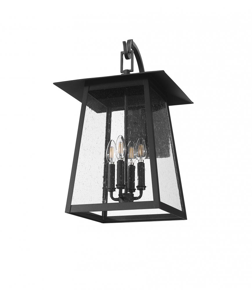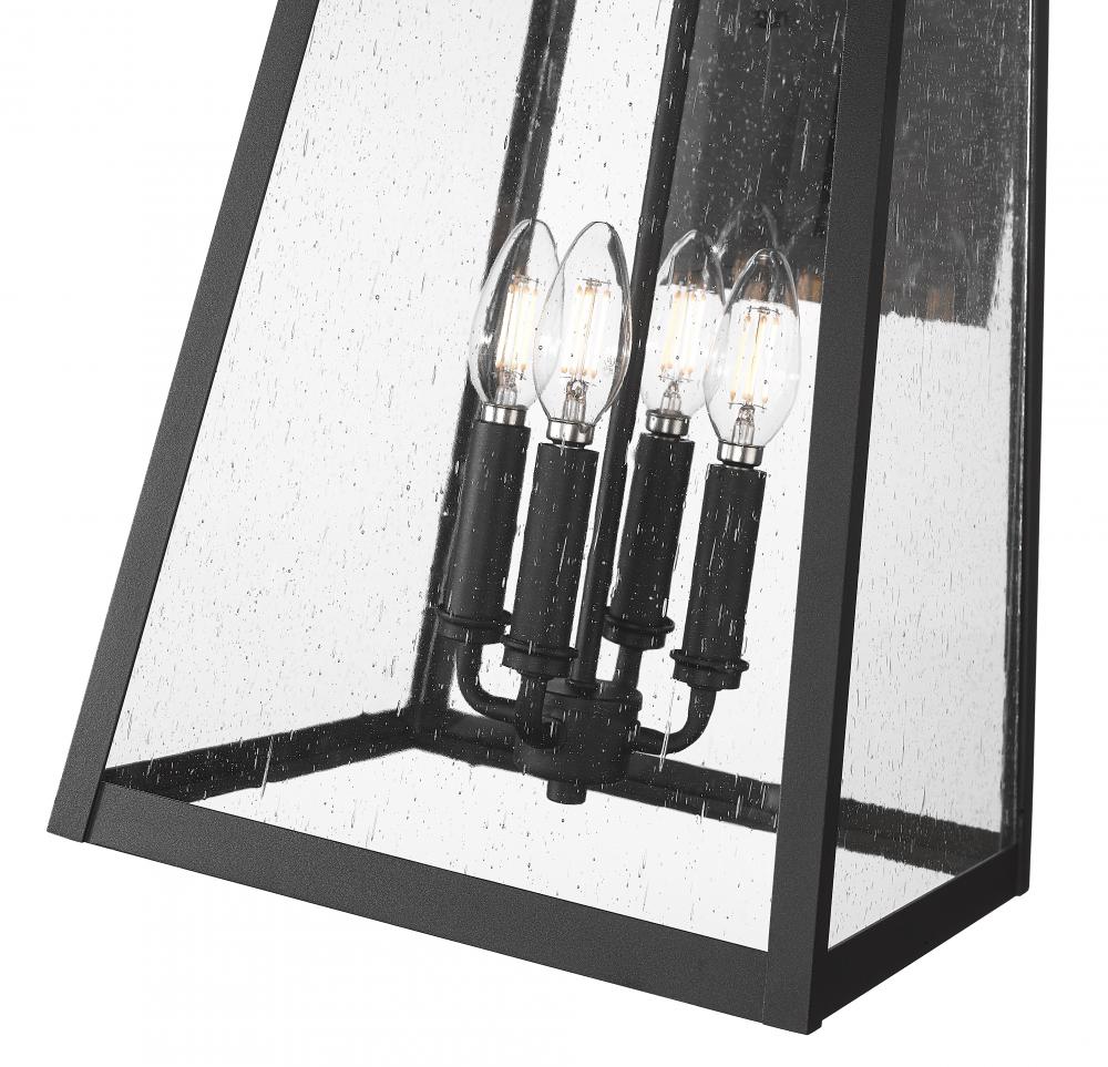 A romantic birdcage motif mixes with the classic lantern design to create a modern four-light outdoor wall light perfect for sprucing up any space. Aluminum framing with a Coastal black painted finish pairs with clear seedy glass, creating an iconic style. This dimmable wall light serves its purpose for illuminating porches, patios, and pool houses.