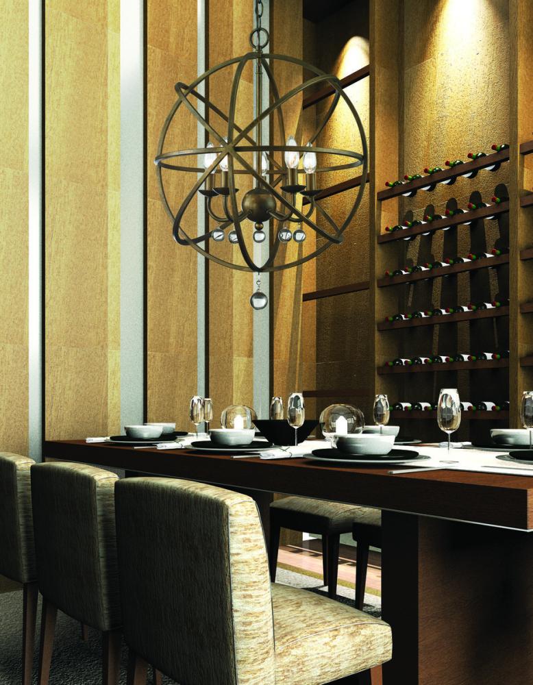 Spherical art at its best! On this 5 light pendant, the rich hues of the golden bronze finish mingle playfully with the crystal spheres sparkling from within.