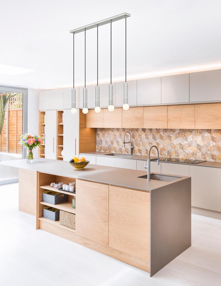 Brighten a kitchen island or family dining table with the easy minimalism of this modern five-light linear chandelier. Each light features a braided cord and an elongated tube, casting bright, inviting ambiance perfect for daily living or entertaining. A brushed nickel finish graces the steel frame, offering versatile style and sophistication.