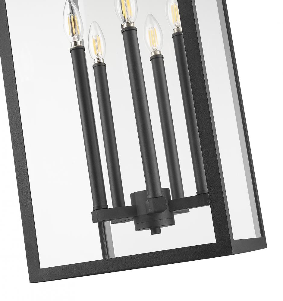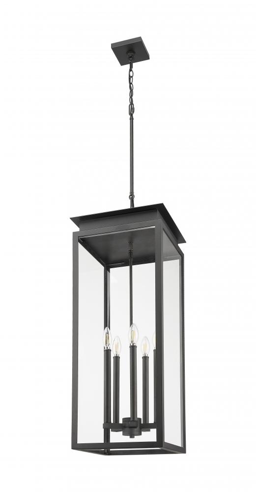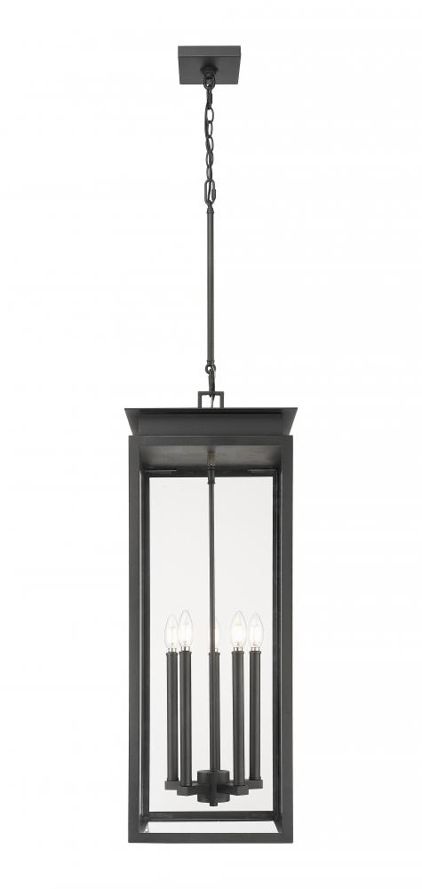 Bring grand luxury and elegance to your exterior entryway with this transitional five-light outdoor hanging pendant. Designed with a clean, precise silhouette inspired by a classic lantern, it features glass sides and a door that opens for easy lamping. The fixture is complete with a coastal black finish that stands up to weather all year long.