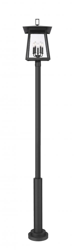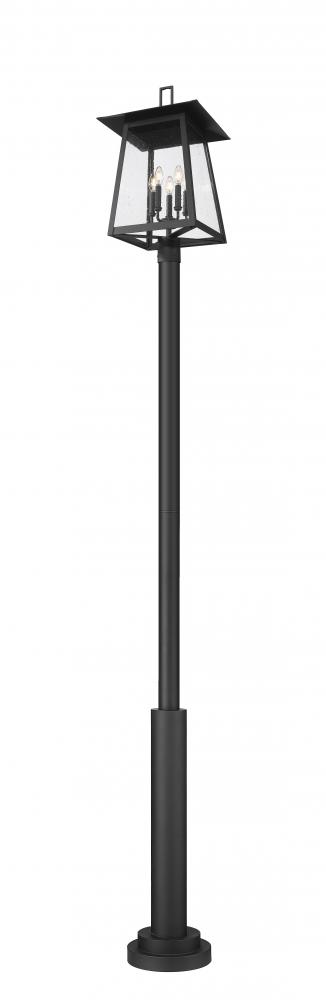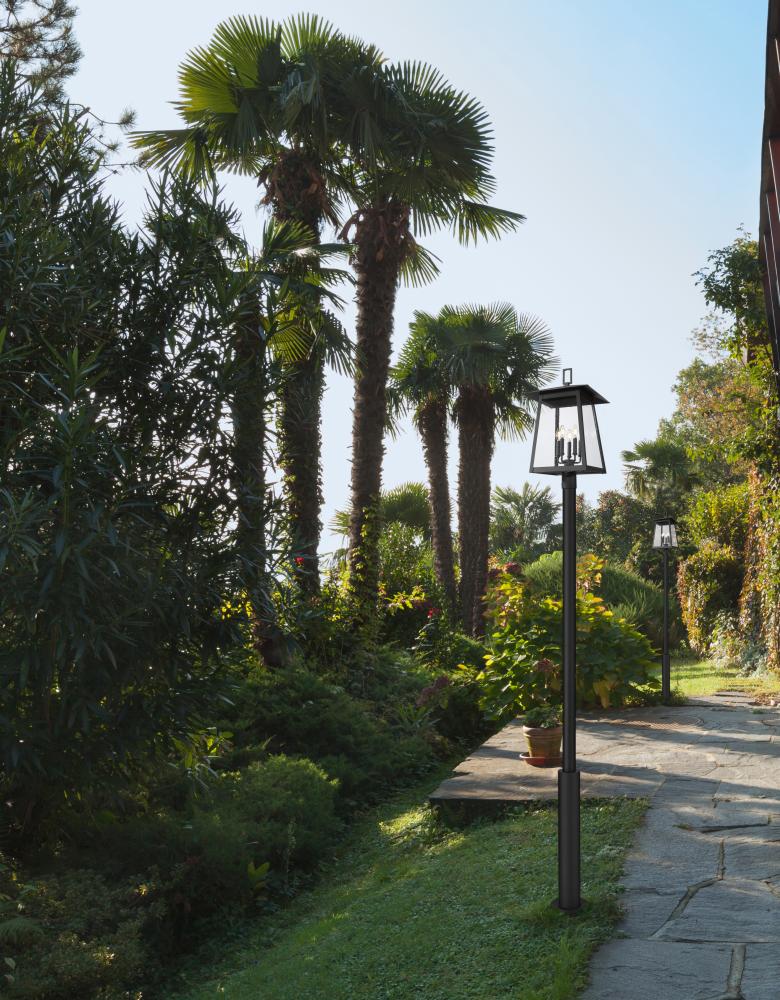 This five-light outdoor post-mounted fixture embellishes any setting as it offers soft, glowing illumination. Coastal black finishing complements aluminum construction, while seedy glass panels create the right dose of dimension and vintage depth. Its a dimmable fixture, ideal for setting the right ambiance in your gardens and landscaping.
