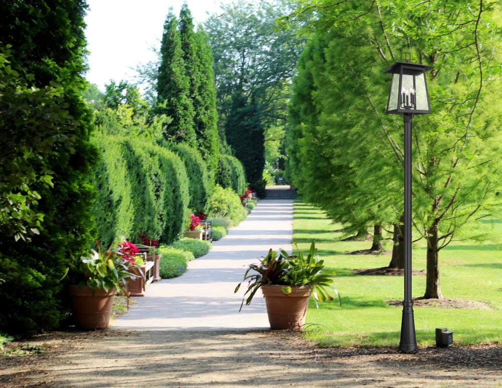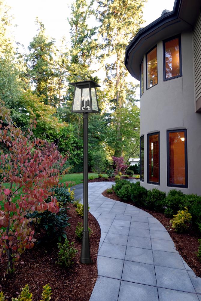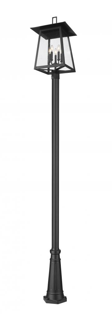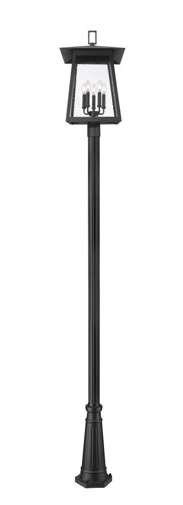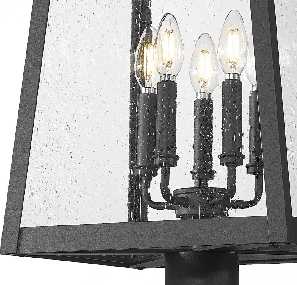 A boost to any exterior setting, this five-light outdoor post-mounted fixture offers soft, glowing illumination. With a lantern motif and gently contoured pole silhouette, it features aluminum construction with a smooth Coastal black finish. Seedy glass panels add vintage texture and a candelabra light mount contributes a touch of romance to the overall look.