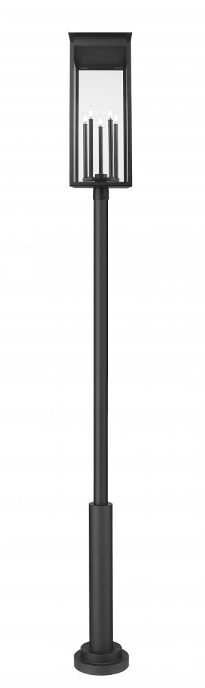 Create a warm and inviting glow across your front walk with this transitional five-light outdoor post mount light. Its squared lantern design is enhanced with a durable coastal black finish. Glass panels accent candelabra lamping as this fixture provides compelling curb appeal.