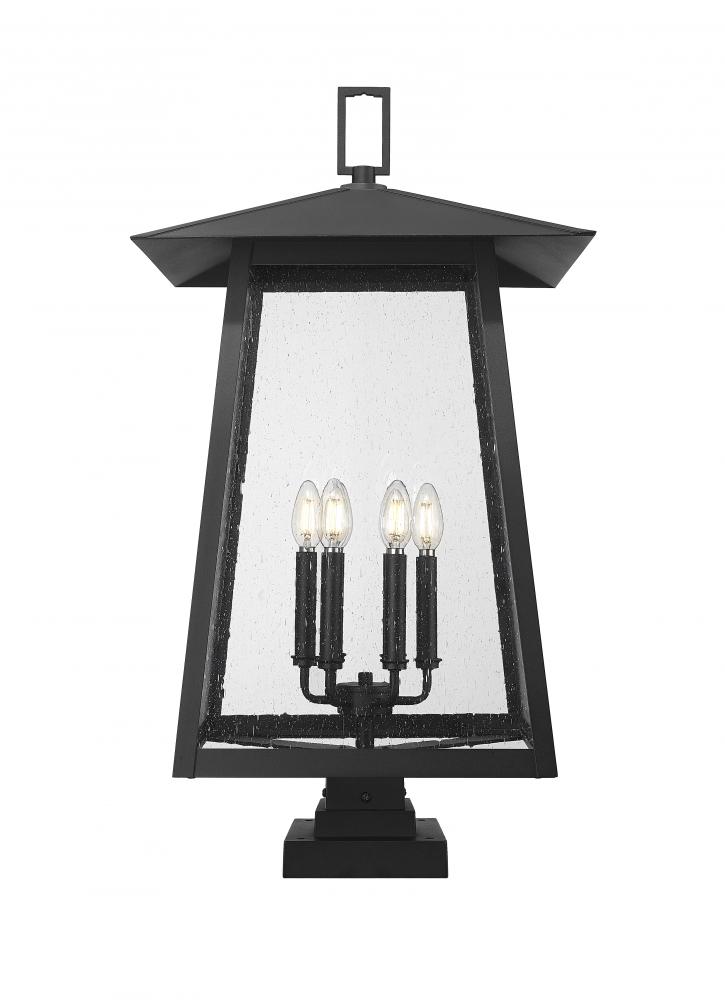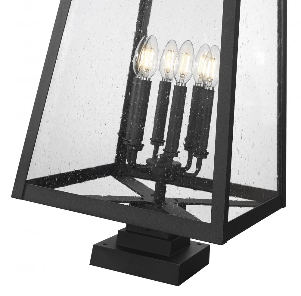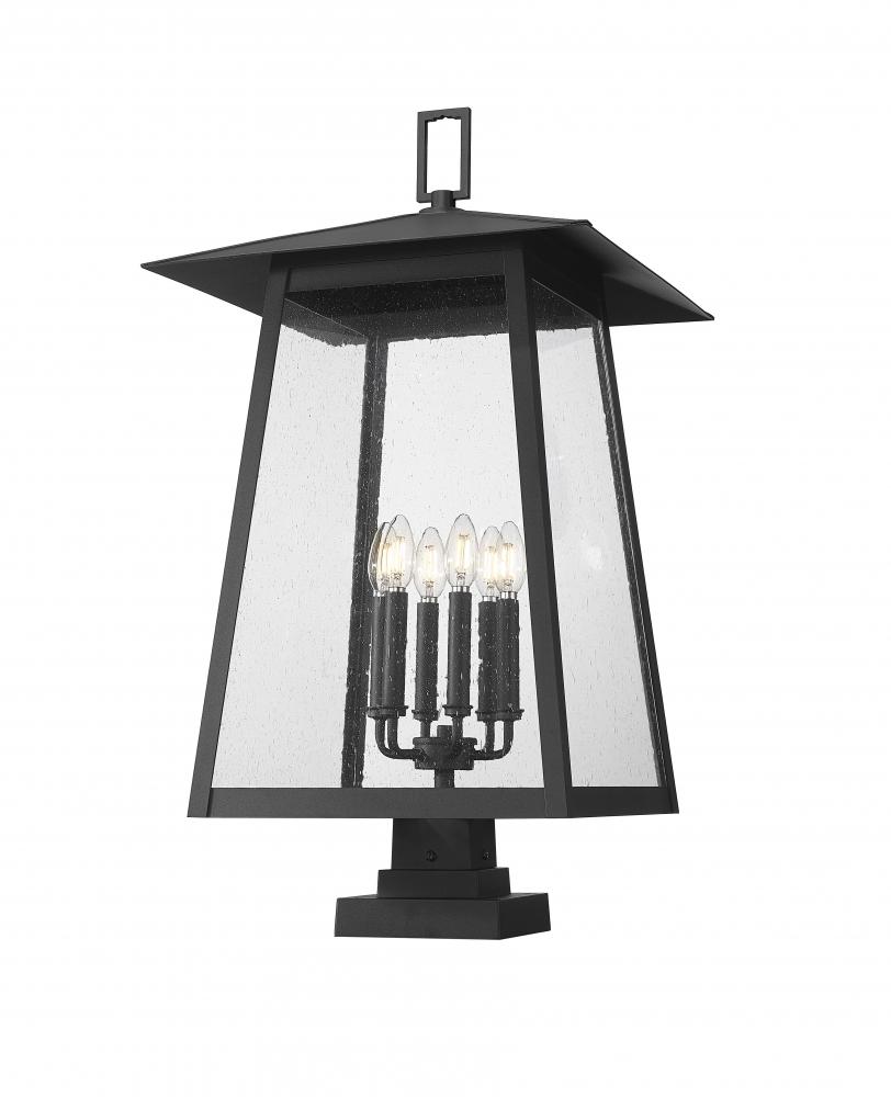 A cage-like lantern motif makes a statement in an exterior space, attracting attention and lifting the artisan vibe of a targeted spot. Embrace this six-light outdoor pier-mounted fixture that brings a sophisticated look with artisan influence. Fashioned of Coastal black painted aluminum with clear seedy glass panels, its elegance stands the test of time in both traditional and contemporary exterior settings.